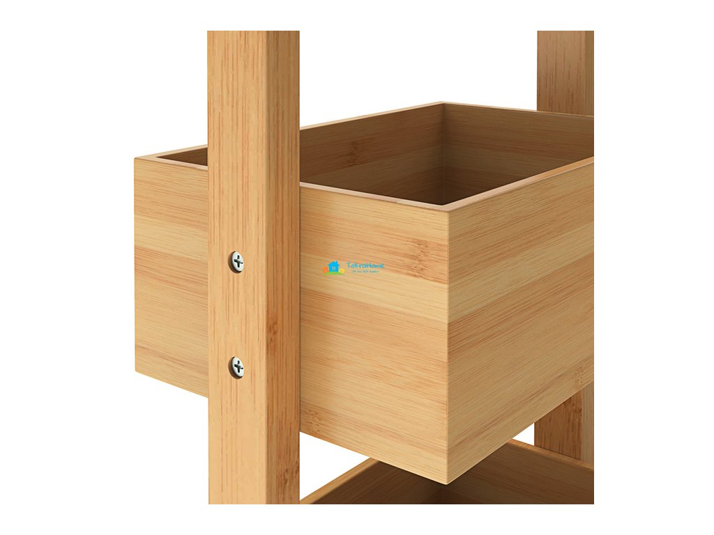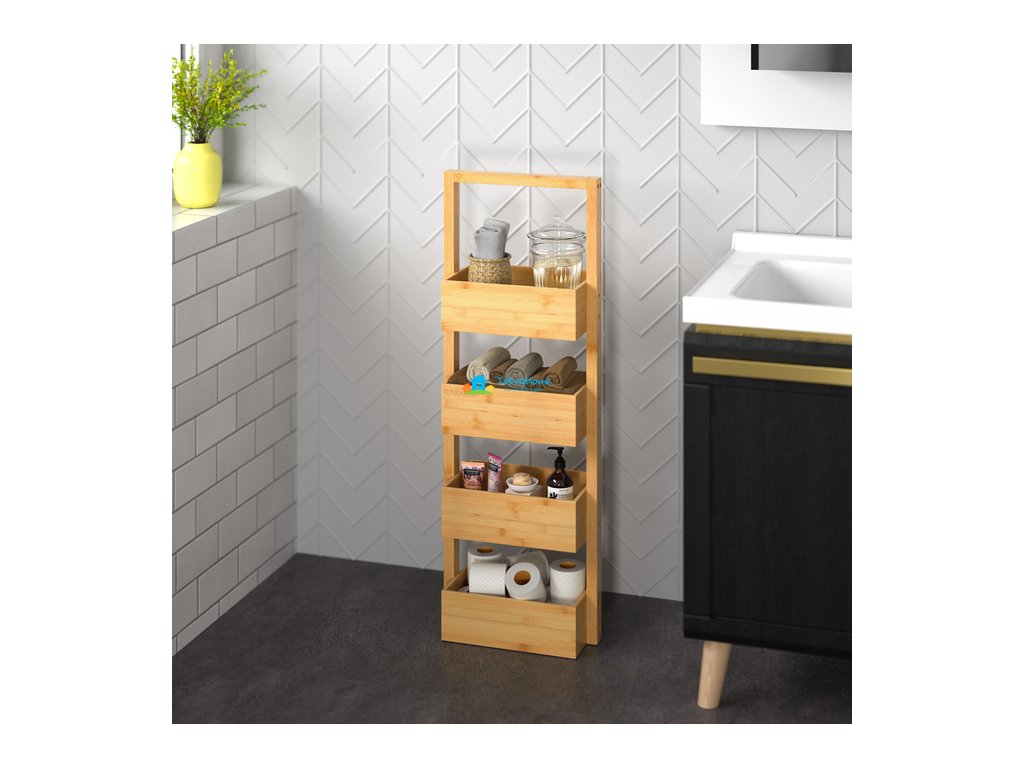 Praktické provedení a univerzální využití dělají z tohoto bambusového regálu ideální řešení pro koupelnu, kuchyni, předsíň i další místnosti, kde chcete mít své věci přehledně uložené a stále po ruce.