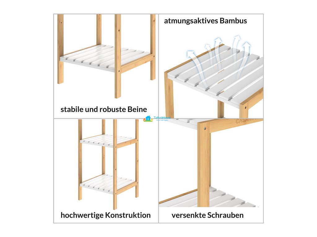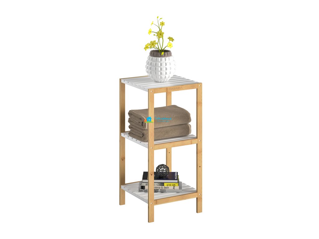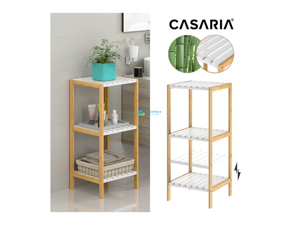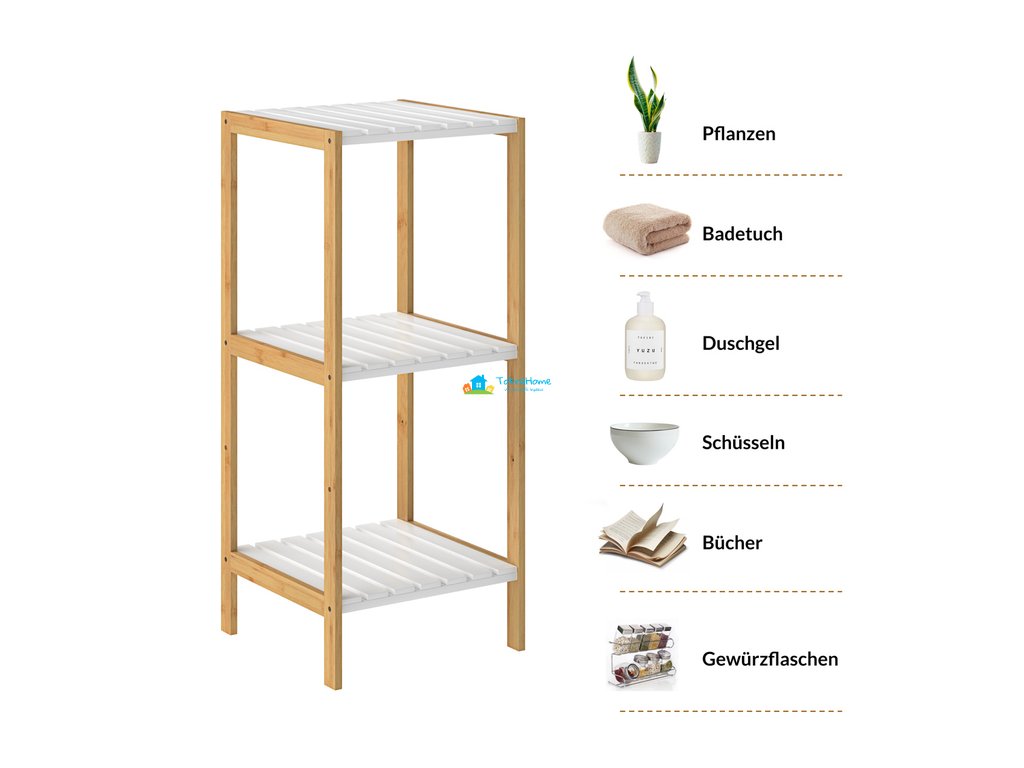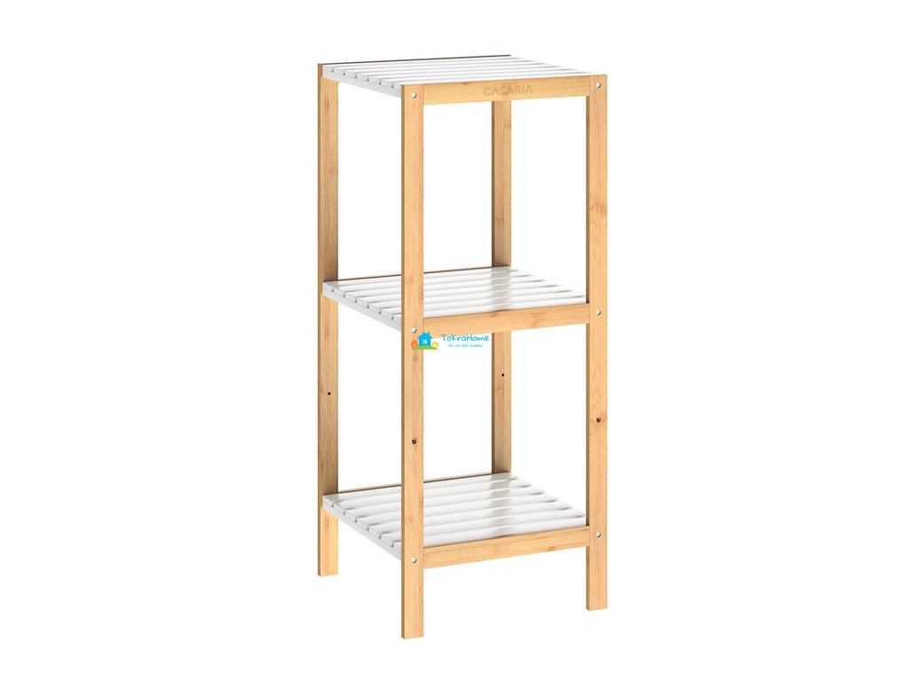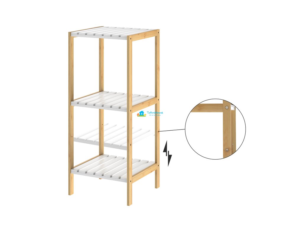 Bambusový regál, 3 police, nosnost 10kg na polici, univerzální, ekologický, prostorově úsporný, přírodní vzhled, bílý