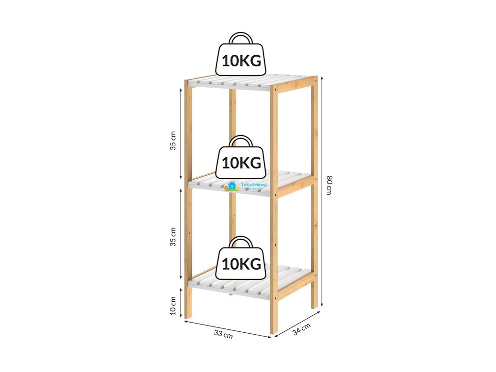 Bambusový koupelnový regál je praktickým a stylovým řešením, jak získat více úložného prostoru i v menších místnostech. Nabízí 3 police s nosností 10 kg na polici, na které lze uložit kosmetiku, ručníky nebo čisticí prostředky. Díky kompaktním rozměrům se hodí i do menších koupelen a přitom poskytuje dostatek místa pro různé potřeby.