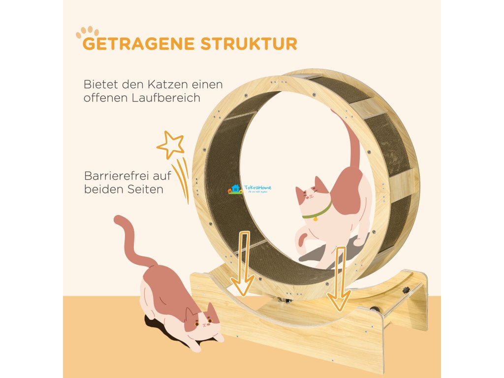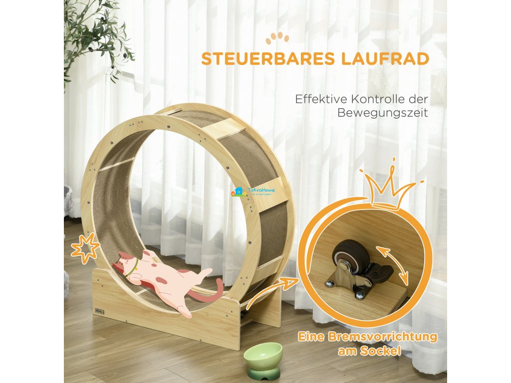 Běhací kolo pro kočky, vyměnitelná škrabací podložka, do 5kg, s brzdou, tichá rotace, odolný materiál, přírodní