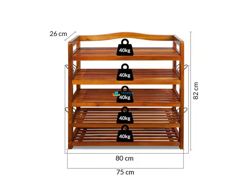 Botník s 5 policemi z akátového dřeva, 75 x 26 x 82 cm