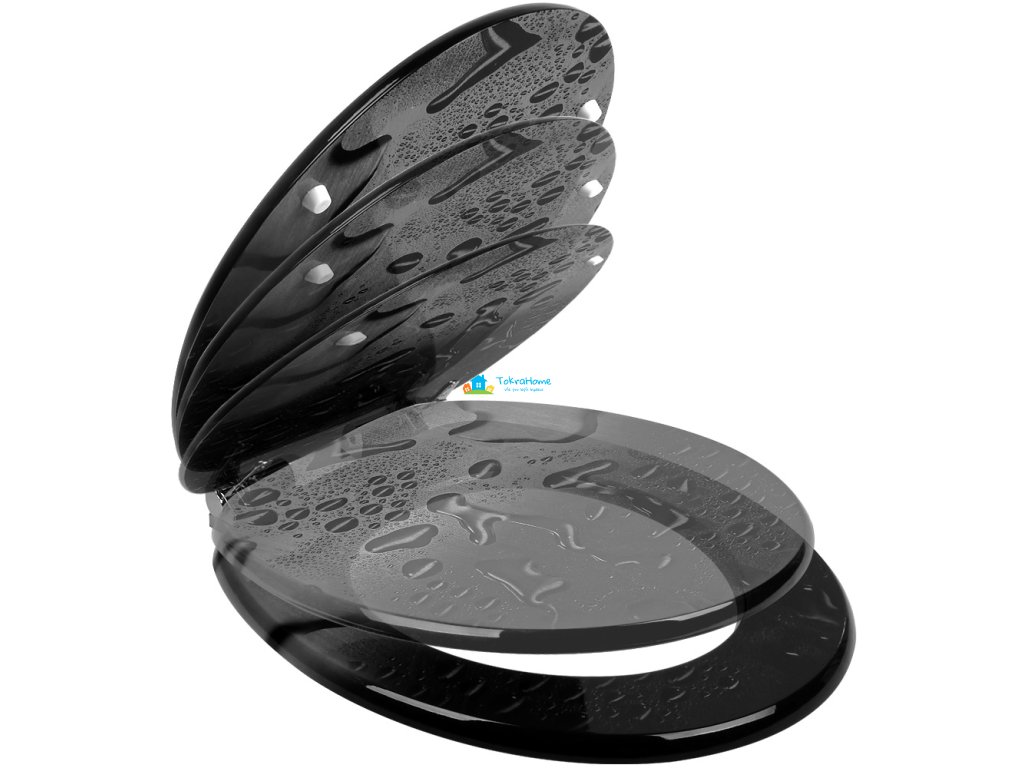 WC sedátko s automatickým spouštěním dekor kapky vody černé
