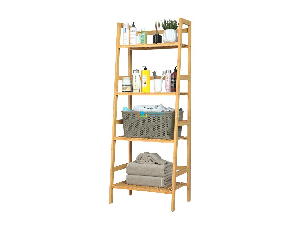 Žebříková police z bambusu se 4 policemi, 123 cm