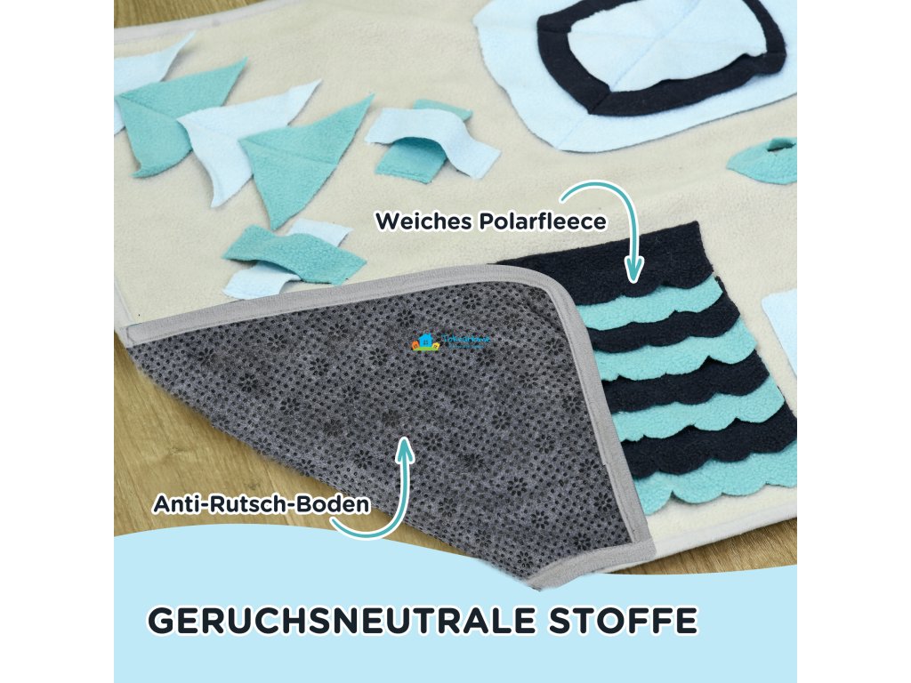 Čmuchací deka, polyester, protiskluzová spodní část, lze prát, univerzální, bez nutnosti montáže, stimulace čichu a mysli