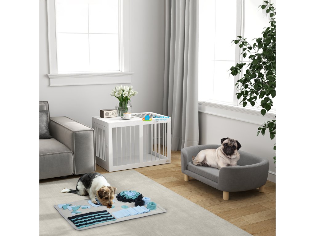 Používání podložky přináší i psychickou stimulaci a pomáhá předcházet nudě či nežádoucímu chování. Díky různým tvarům – kapsám, vlnám, křížům či květinovým otvorům je hledání potravy vždy rozmanité a pro mazlíčka zábavné. Podložku lze prát v pračce, snadno se udržuje a dlouhodobě drží svůj tvar. Vhodná je pro malé a střední psy, kočky, králíky i malá prasátka. Dodává se kompletní a není nutná žádná montáž, stačí ji rozložit a začít používat.