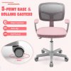 Dětská otočná židle s područkami k psacímu stolu, výškově nastavitelná, ergonomická, polstrované sedadlo, růžovo-šedá.