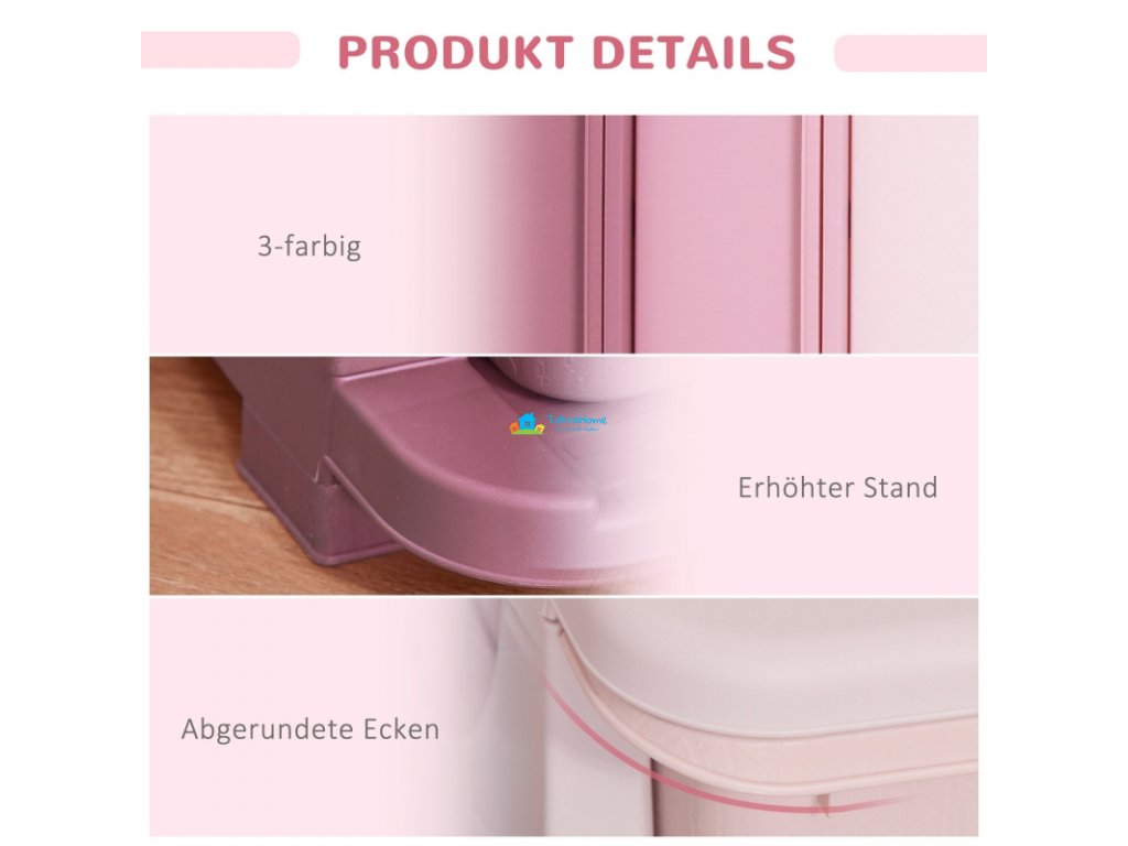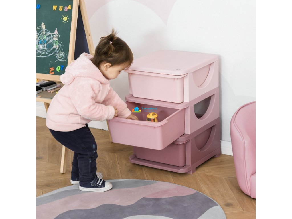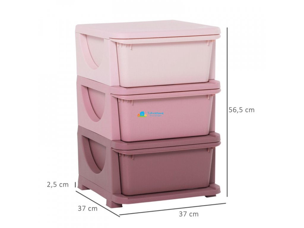 Zásuvková skříňka od Homcom, 3 velké zásuvky růžové barvy, zaoblené hrany, zásuvky jsou vyjímatelné, úchyty po stranách, vyrobeno z PP materiálu, snadná údržba.