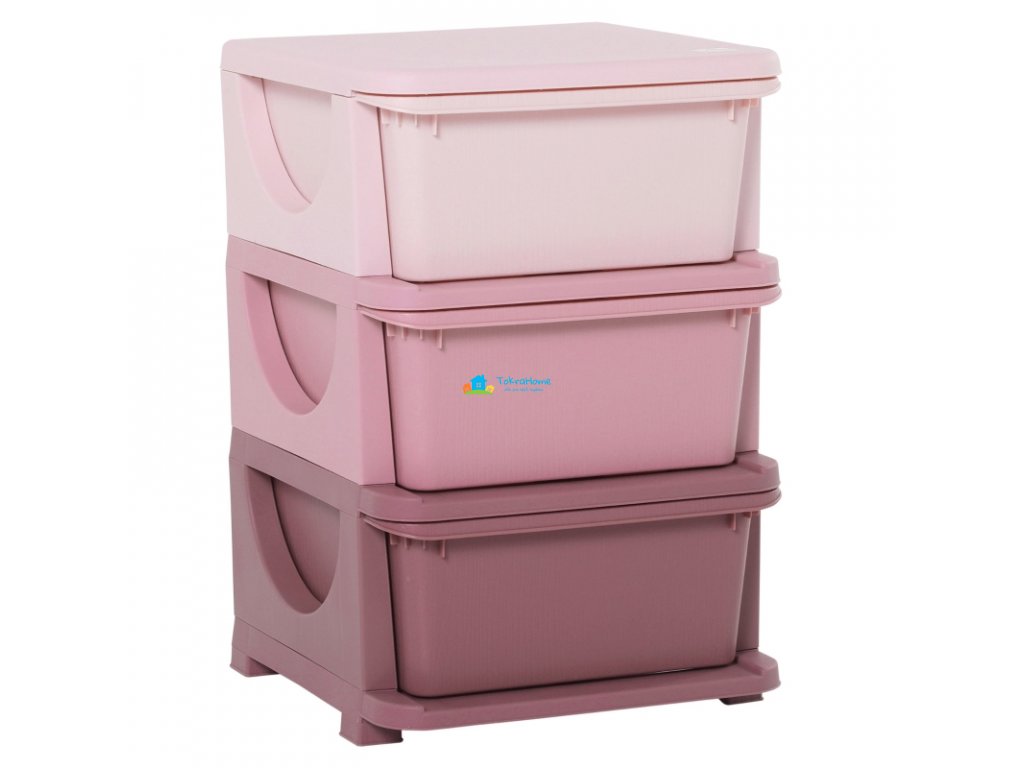 Dětská zásuvková skříňka (organizér) s úložnými boxy na hračky, růžová 37 x 37 x 56,5 cm