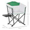 Kempingová židle Outsunny, užití vevnitř i venku, robusní rám a nánožníky zajišťují stabilitu, s držákem na nápoje, úložným prostorem a kapsou na mobil, materiál je voděodolný, bílo-zelené provedení.