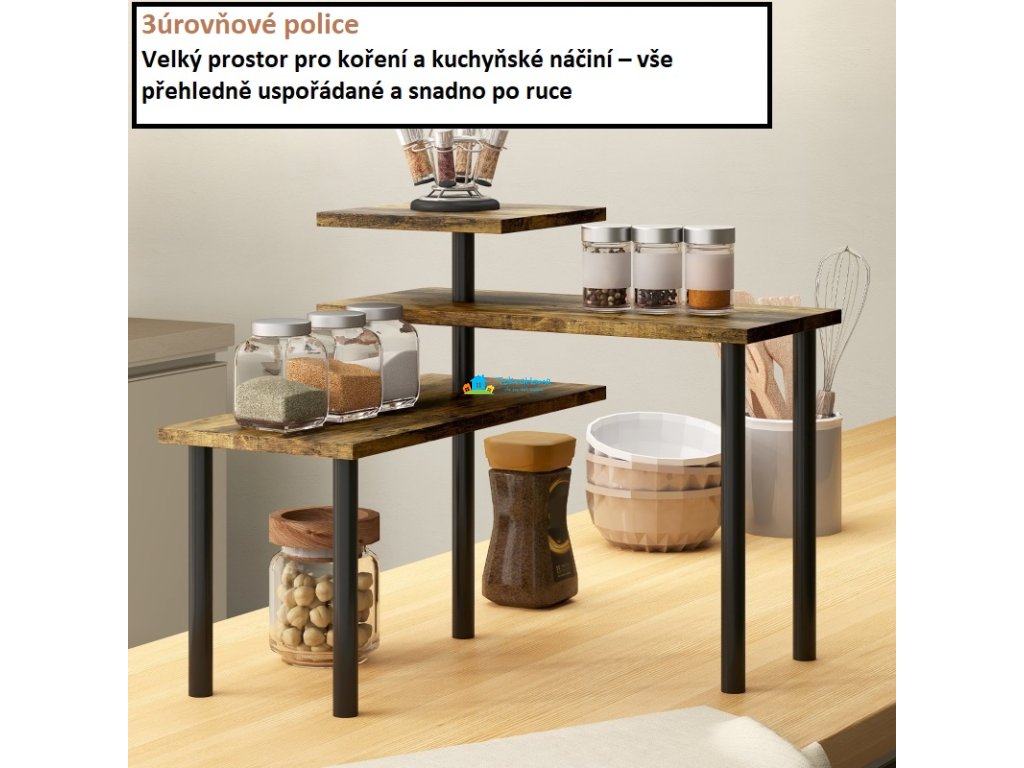 Kuchyňská police 3-patrová, rustikální hnědo-černá