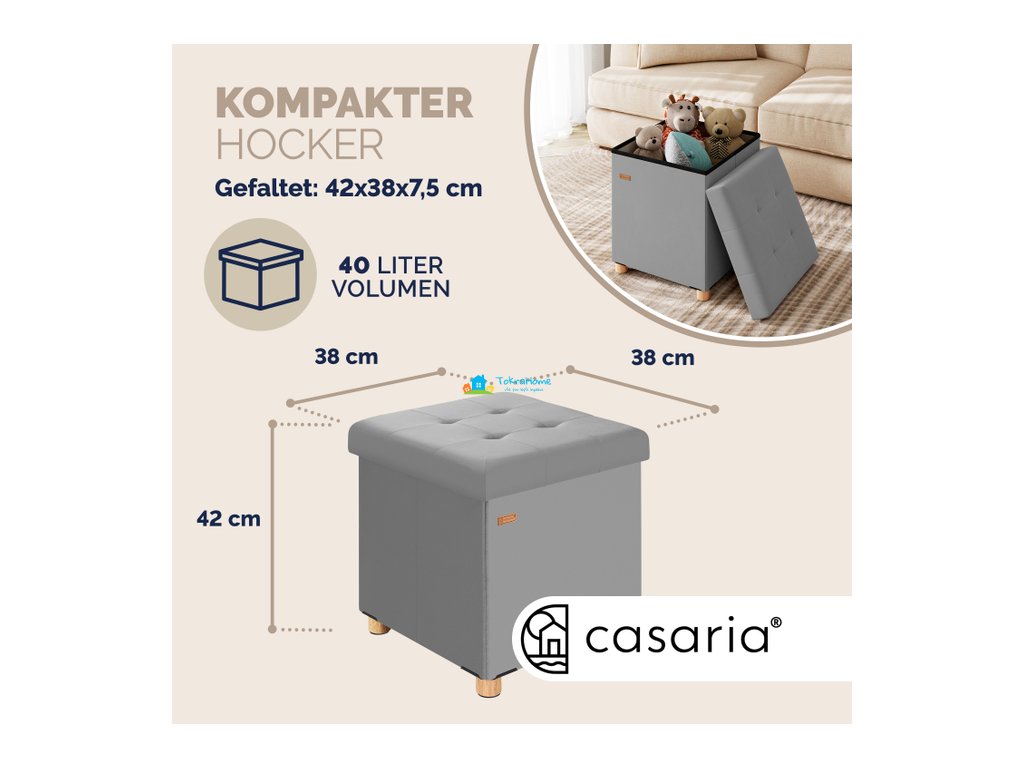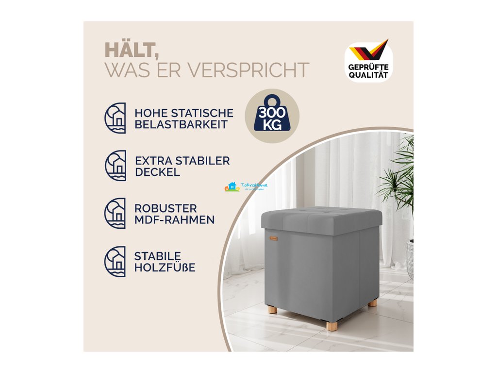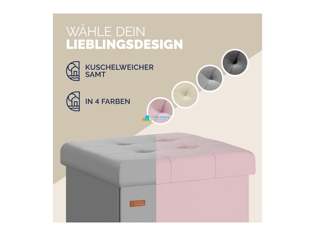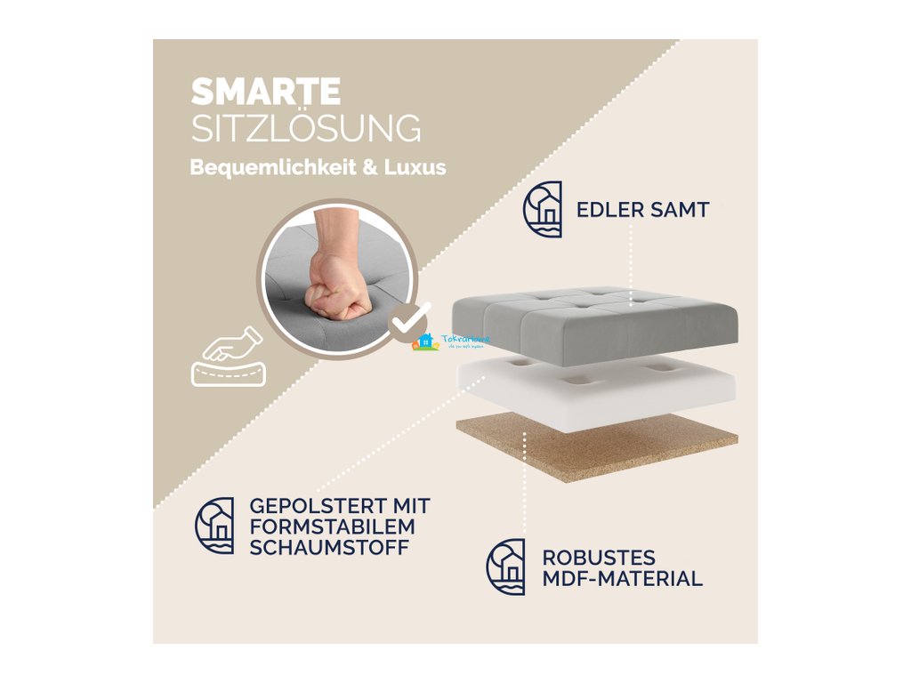 Elegantní sedací taburet značky CASARIA z jemného sametu je praktickým a stylovým doplňkem do každé domácnosti. Díky úložnému prostoru o objemu 40 litrů poskytuje místo pro deky, polštáře nebo další drobnosti, které chcete mít vždy po ruce. Pevná konstrukce z MDF a silně polstrované víko s výplní z měkké pěny zaručují pohodlné sezení, zatímco čtyři stabilní dřevěné nohy s ochranou podlahy dodávají celému kusu nábytku bezpečnost a stabilitu. Taburet se díky svému modernímu designu hodí do obývacího pokoje, ložnice i předsíně.