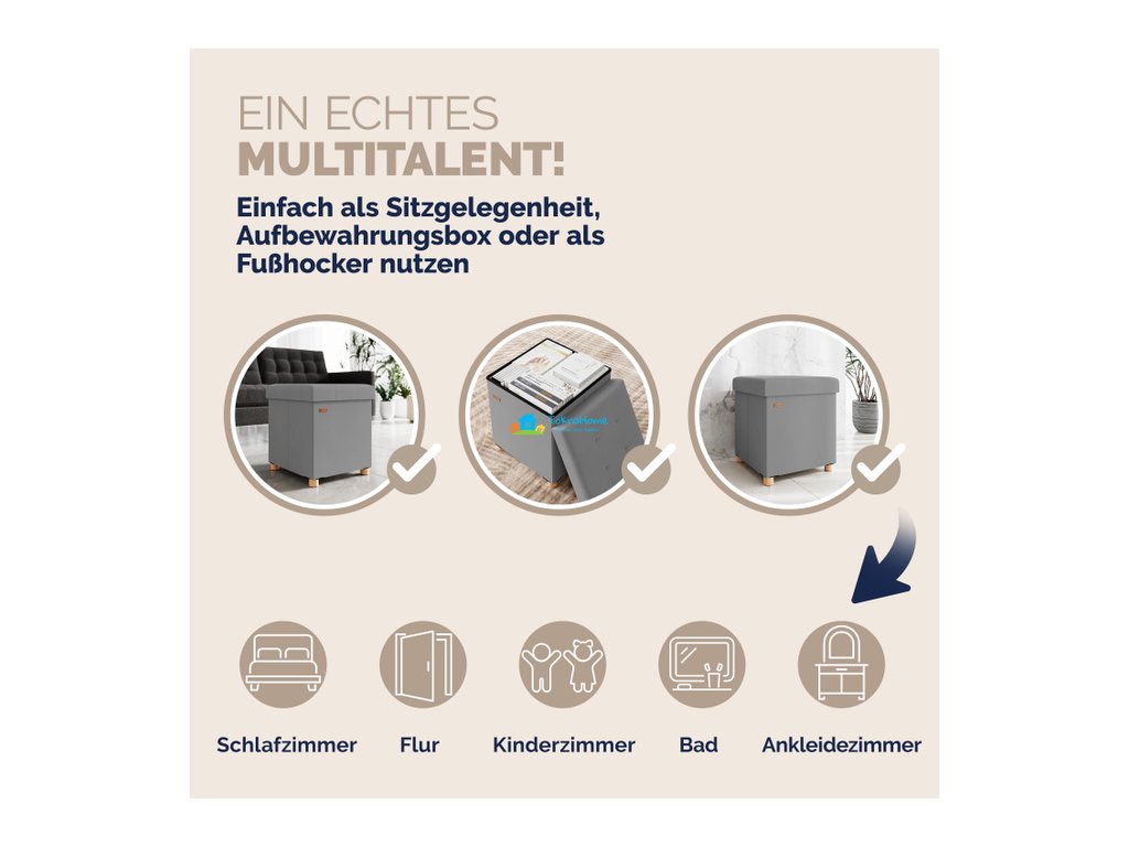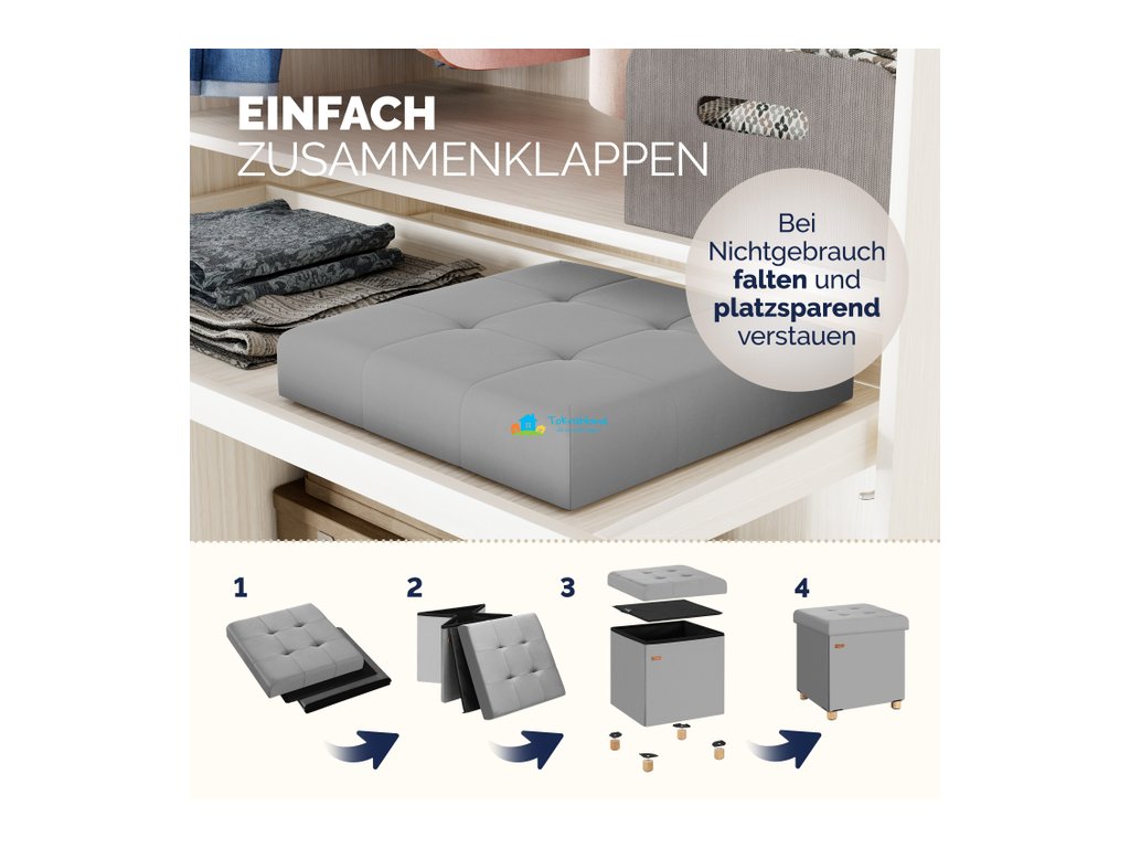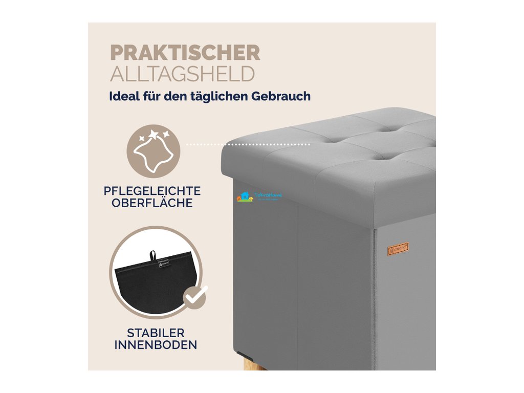Mini taburet / stolička s úložným prostorem na nožičkách, šedý, 42 x 38 x 38 cm