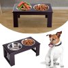 Dvě nerezové misky pro krmení a vodu ve stojenu z MDF desky od společnosti PawHut, stojan je hnědý, má protiskluzové nožičky pro stabilitu a ochranu podlahy, snadné čištění