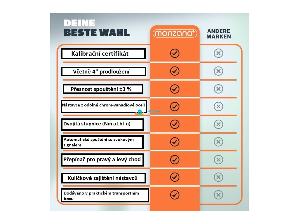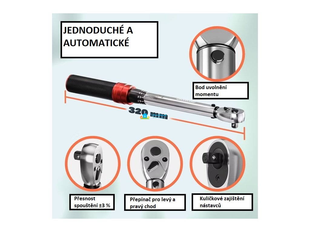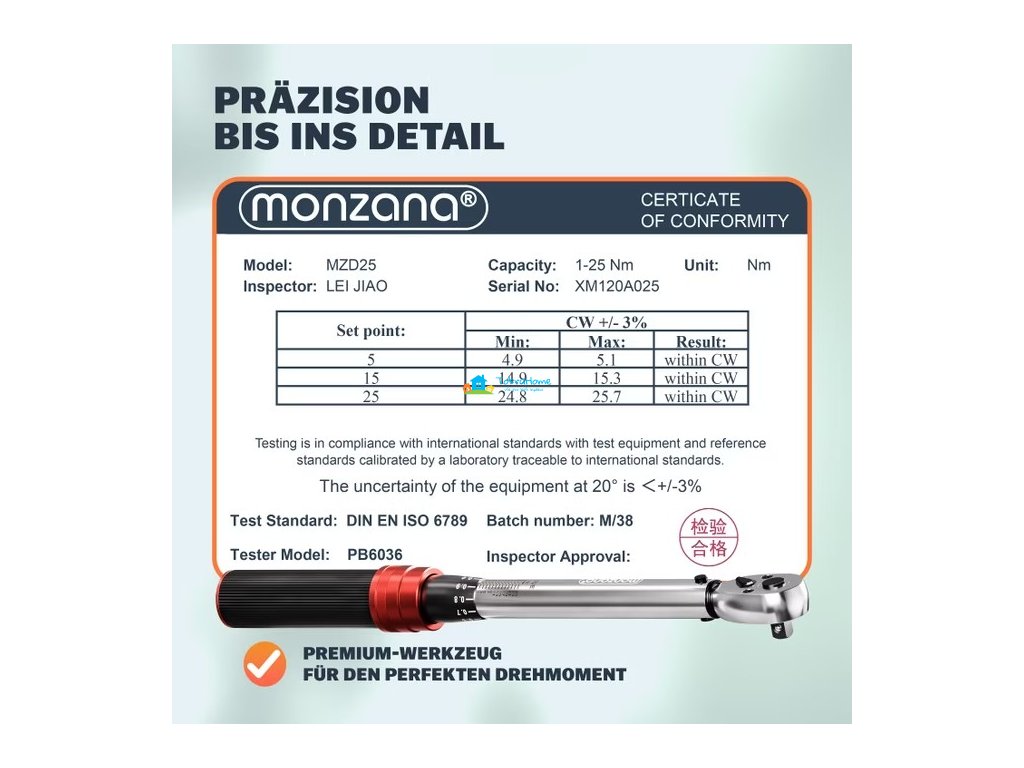 S momentovým klíčem MONZANA® MZD25 je výměna pneumatik na jízdním kole nebo motocyklu hračkou. Sada se skládá celkem z 18 dílů a nabízí vše potřebné pro bezproblémovou výměnu kola. Momentový klíč umožňuje přesné nastavení od 1-25 Nm s minimální tolerancí pouze ± 3 %. Jakmile uslyšíte charakteristický zvuk cvaknutí, uvolněte momentový klíč a nevyvíjejte žádný tlak. Cvakání je hlasitější při vyšších nastaveních a slabší při nižších nastaveních, což vám dává jasný signál. Stupnice, která ukazuje točivý moment v newtonmetrech, je přesně laserována.