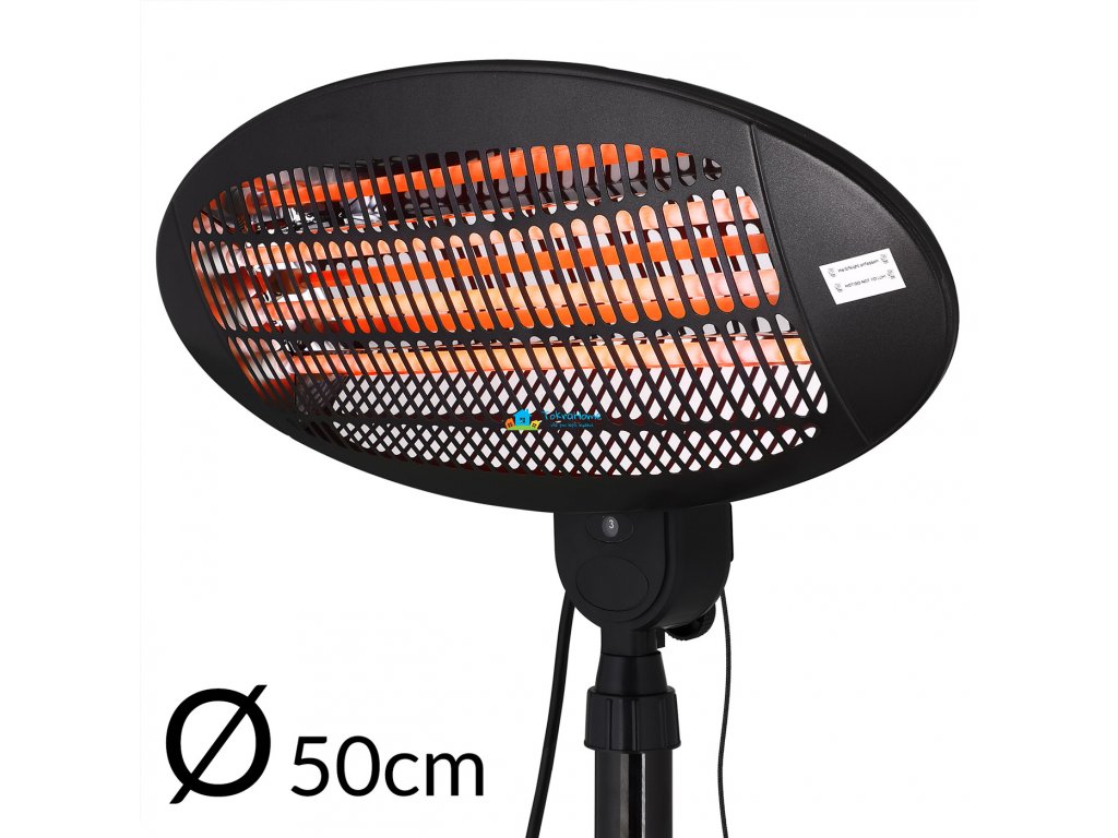 Robustní kovový stojan má průměr 47 cm. Ohřívač také nabízí praktický 3stupňový tažný spínač a bezpečnostní spínač pro přepínání pohybu, který vypne zařízení, když spadne nebo se nakloní.