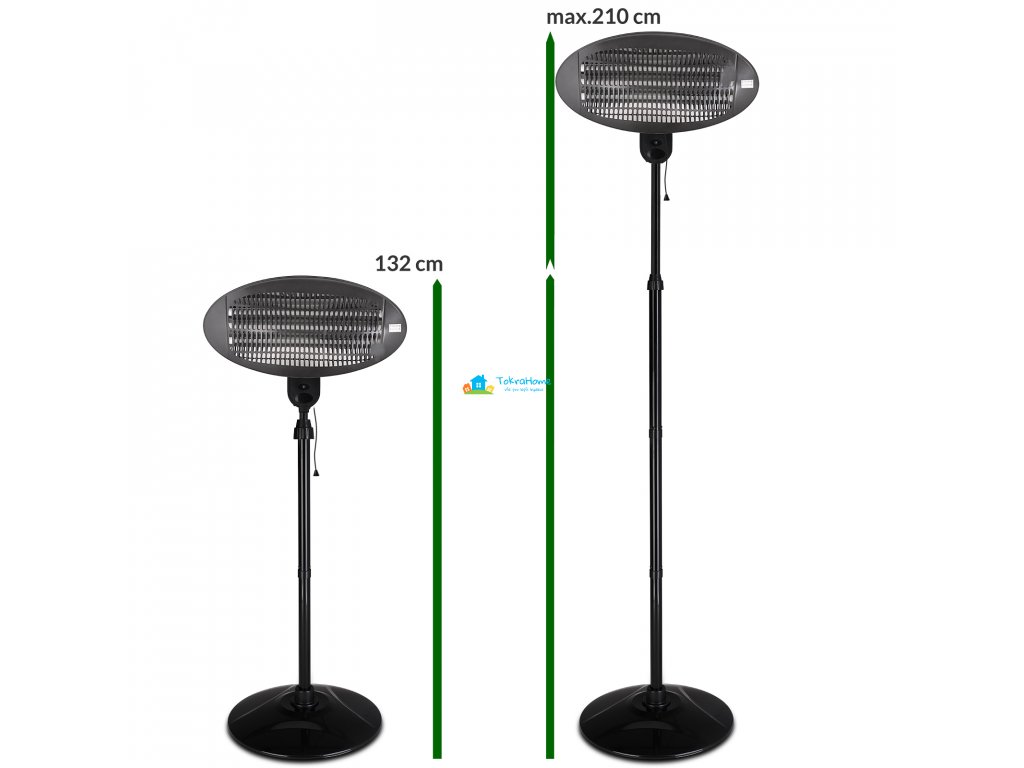 Výšku venkovního ohřívače lze individuálně nastavit praktickou teleskopickou tyčí od 132 cm do maximálně 210 cm. Topnou hlavu lze také naklonit až do úhlu 45°.
