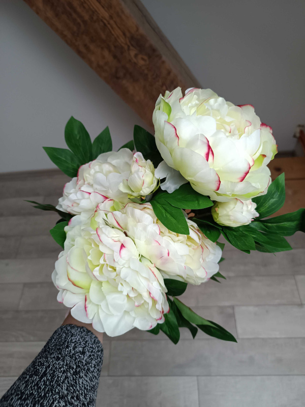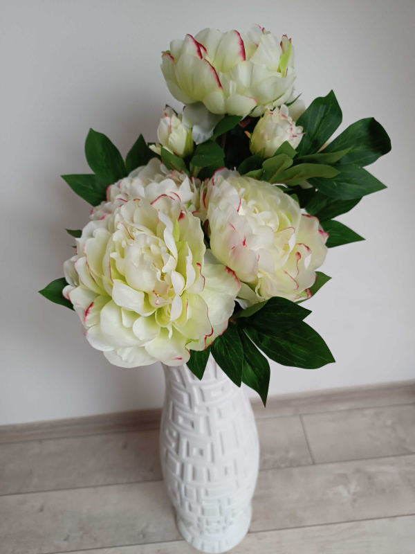 | Umělá kytice Pivoňka 65 cm, bílo-zelená | OD_SUN122/BIL2 | ⭐⭐⭐⭐⭐ | Pivoňky i zelené listy vypadají jako pravé, květ má mnoho okvětních lístků a působí plně. |