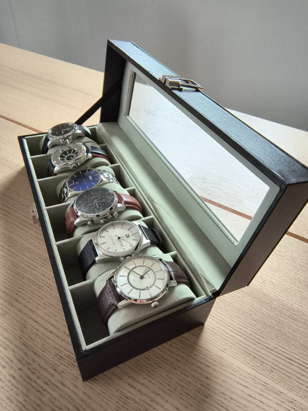 | Box na hodinky s 6 přihrádkami | JWB06BK | ⭐⭐⭐⭐⭐ | Nejen praktický, ale i elegantní. Neudělá ostudu ani v luxusní skříni. Přihrádky jsou dostatečně veliké. | ||