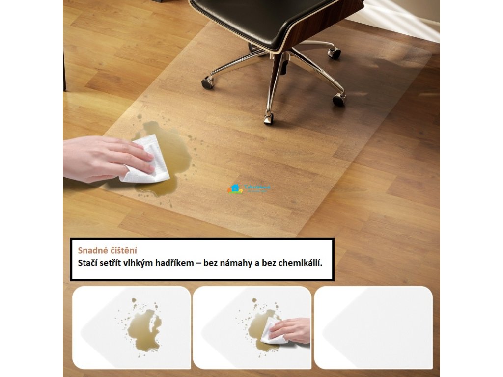 Ochranná podložka, pod kancelářskou židli, ochrana podlahy, tlumí hluk, voděodolná, odolný plast, průhledná