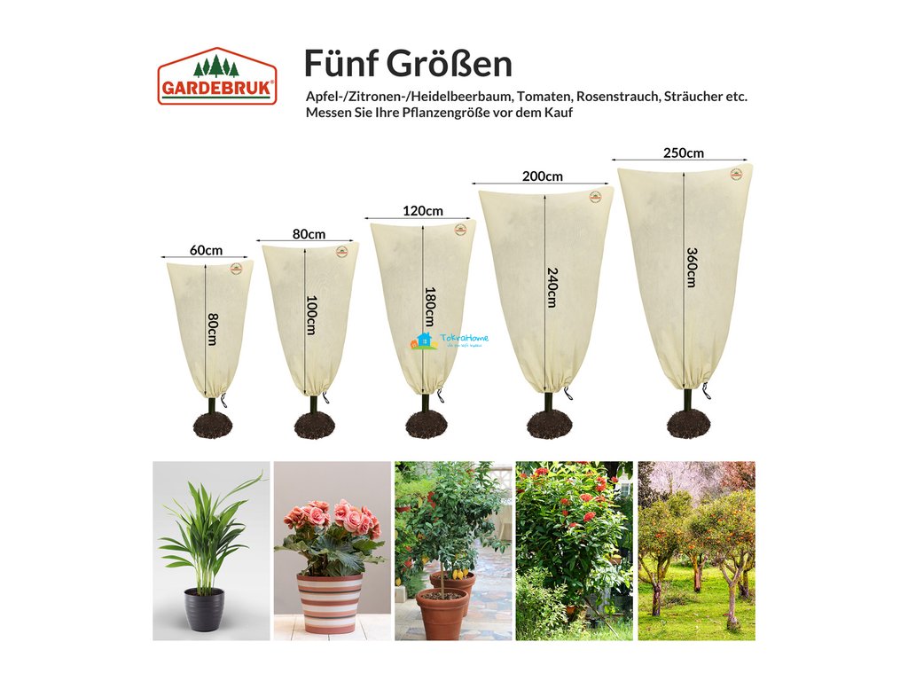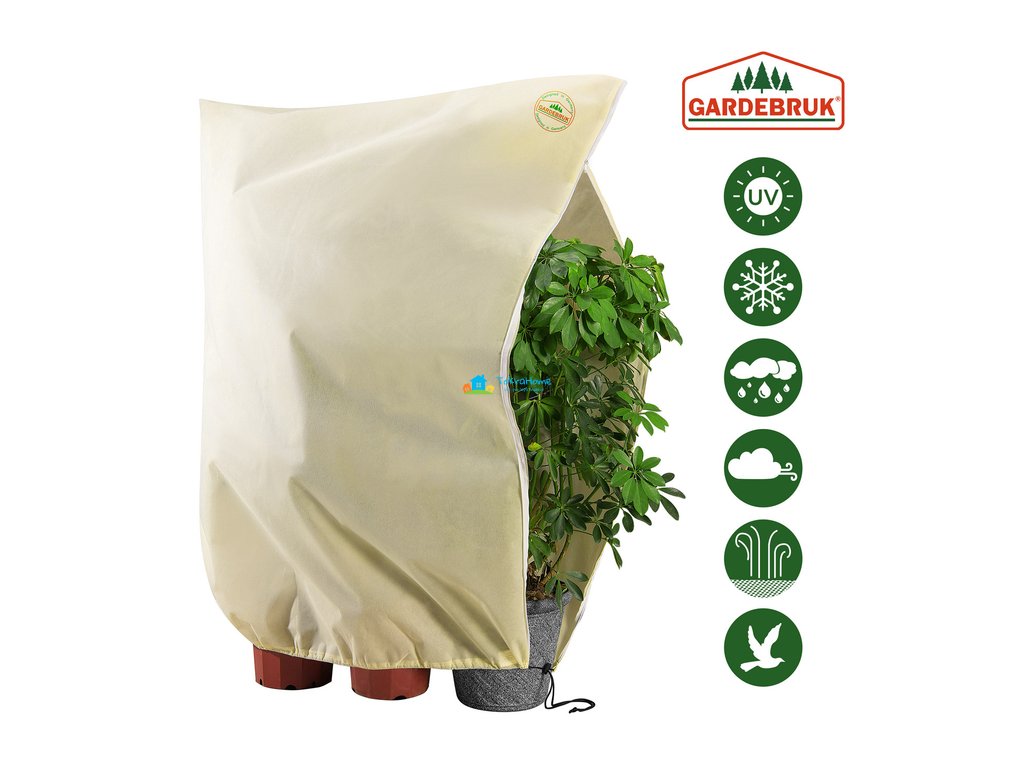 Ochranný obal na rostliny značky Gardebruk je ideálním řešením, jak ochránit mladé stromky, keře a trvalky před mrazem, studeným větrem i škůdci během zimních měsíců. Díky praktickému zipu na boční straně lze obal snadno nasadit i sundat, aniž by došlo k poškození jemných výhonků nebo poupat. Spodní část je opatřena stahovací šňůrou, která zabraňuje pronikání studeného vzduchu i hmyzu a zároveň drží obal pevně na místě i při silném větru.