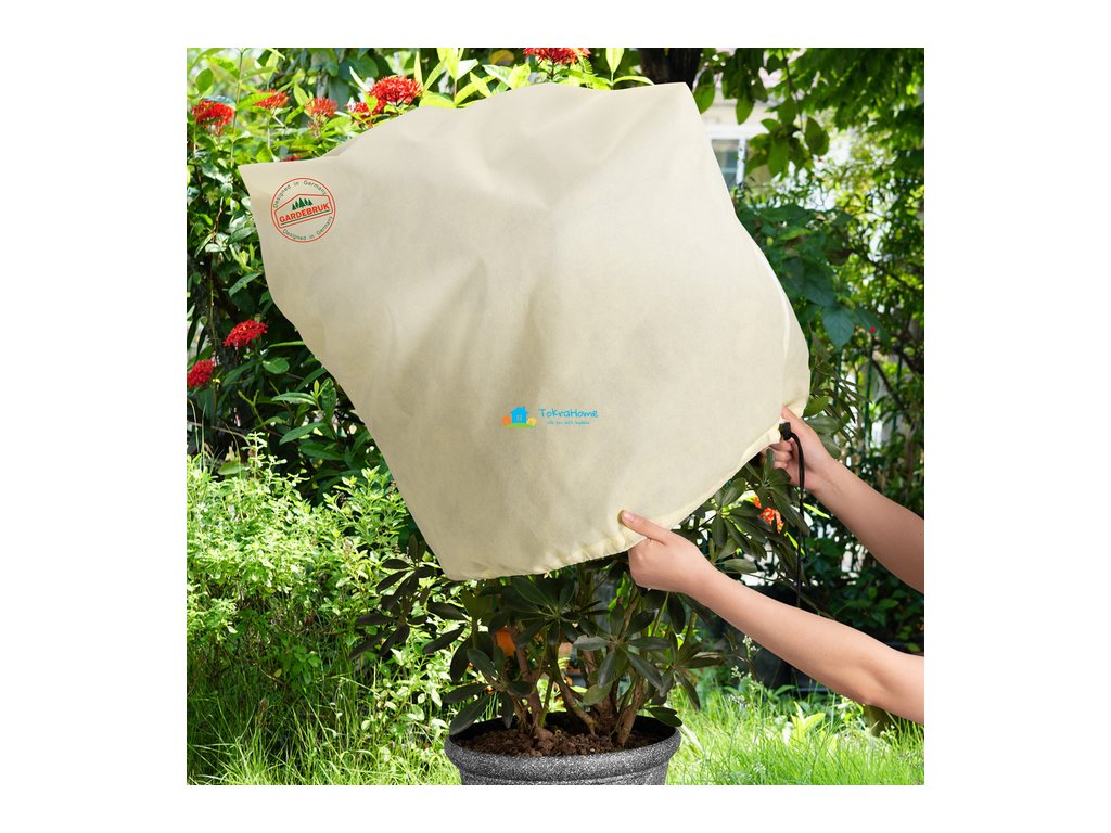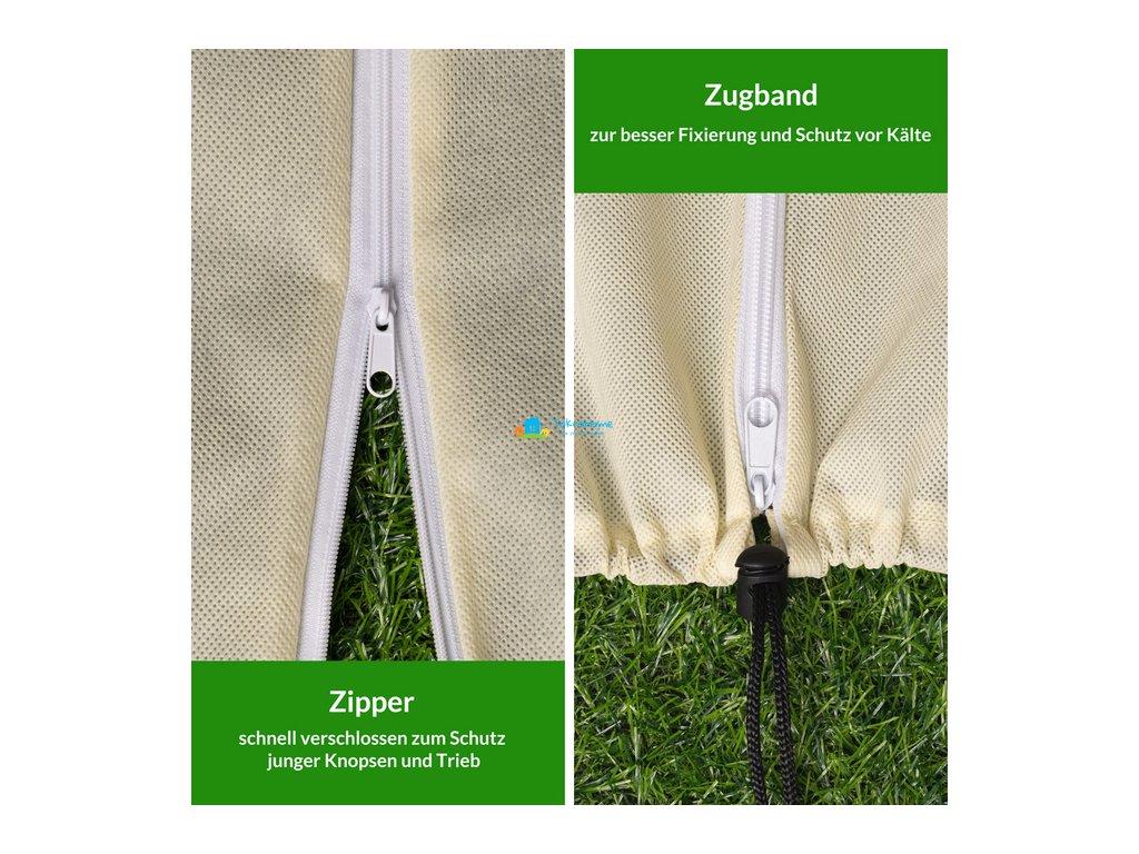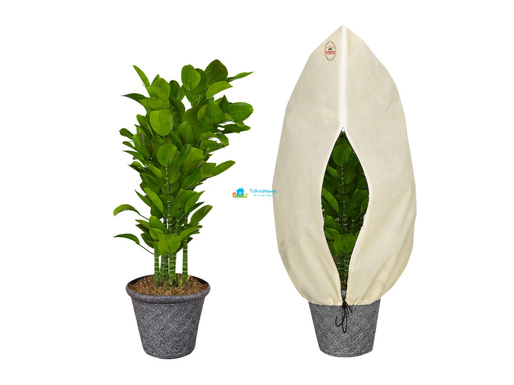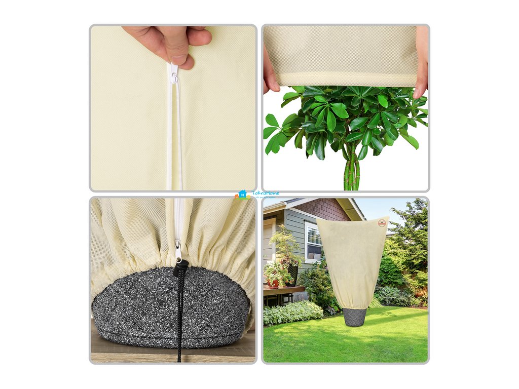 Ochranný obal na rostliny, zip na boku, stahovací šňůra, UV ochrana, pratelný, podporuje růst, silný a odolný materiál, béžový