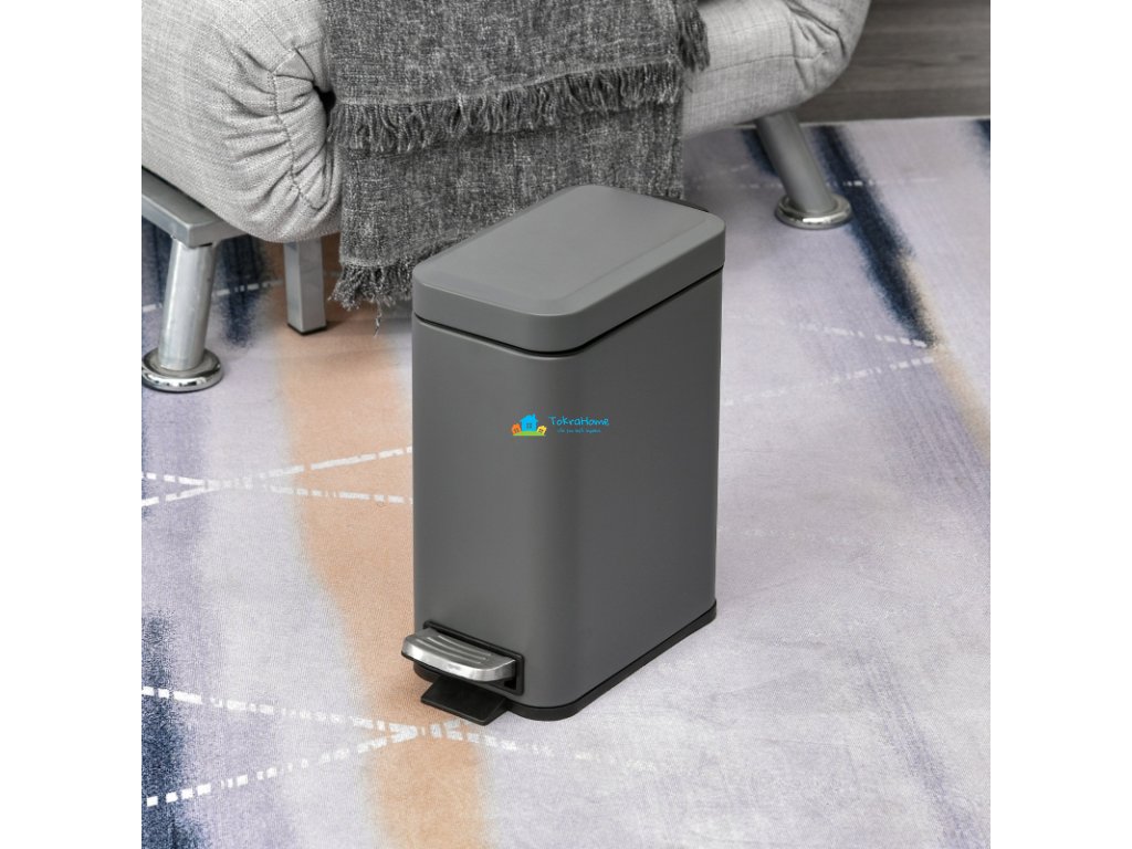 Odpadkový koš od HOMCOM, obdélníkového tvaru, s nožním pedálem, vyjímatelný vnitřní kbelík s rukojetí, protiskluzová základna, 5 l, šedý