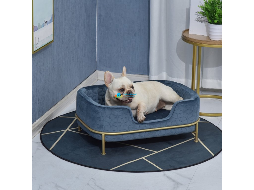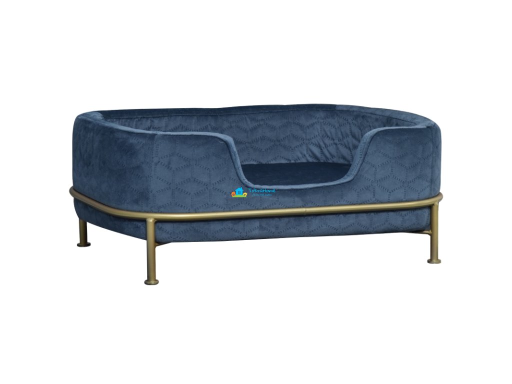Pohovka pro psy s měkkým potahem, modrá/zlatá (pes do 8 kg a 50 cm)