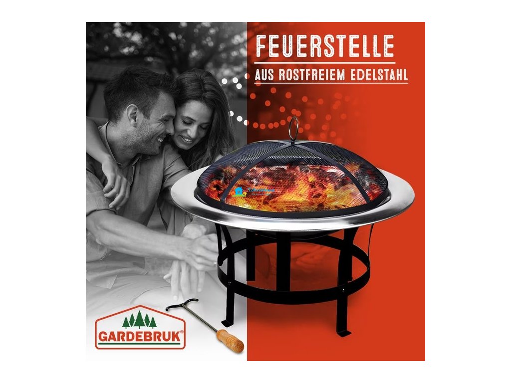 Velká mísa vyrobená z vysoce kvalitní nerezové oceli spočívá na černém práškově lakovaném ocelovém rámu. S několika poleny dřeva v ohništi máte hřejivý oheň pro krásné letní večery jako pár nebo s přáteli. S přiloženou ochranou clonou proti létajícím jiskrám si můžete v klidu vychutnat oheň. Zvláště praktický je pohrabáč, pomocí kterého můžete snadno sundat jiskrovou clonu, upravovat polínka v ohni, nebo vyjmout rošt ohniště.