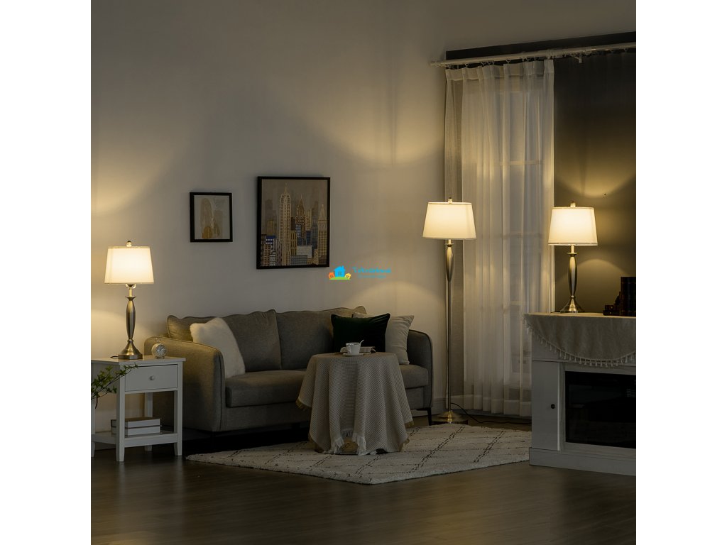 Tato 3dílná sada moderních lamp je ideální volbou pro ty, kteří chtějí sladit osvětlení v celém interiéru. Set obsahuje jednu stojací a dvě stolní lampy, takže získáte jednotný vzhled a zároveň dostatek světla pro různé kouty místnosti. Elegantní stříbrná konstrukce v kombinaci s bílými látkovými stínidly působí čistě a moderně. Jemně strukturovaný povrch stínidel rozptyluje světlo do příjemného teplého tónu, což vytváří útulnou atmosféru při večerní relaxaci i práci.