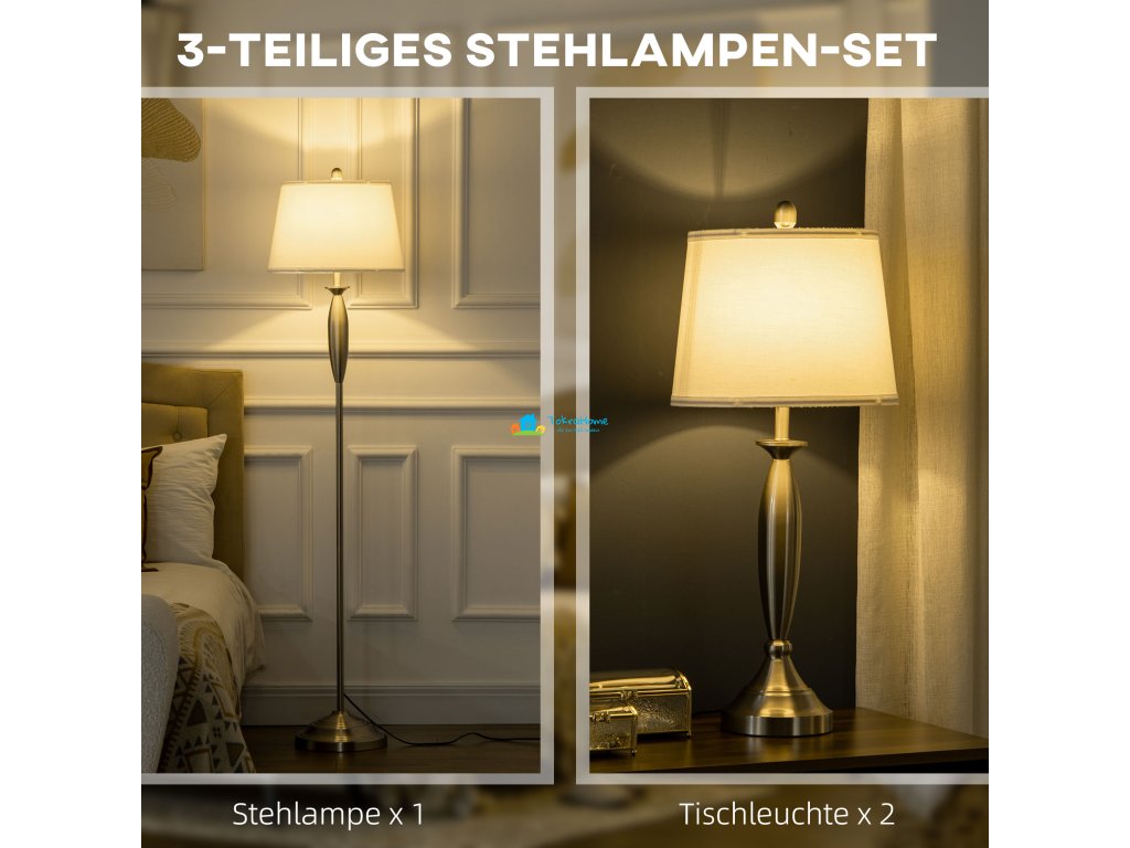 Sada lamp, 1 stojací lampa, 2 stolní lampy, moderní design, ocelová základna, nožní spínač, kabel 1,8 m, univerzální, stříbrno-bílá