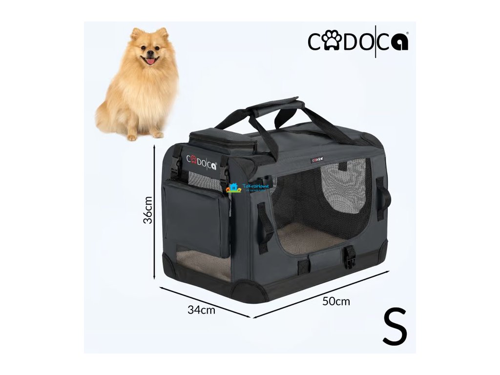 Velké vestavěné síťované přihrádky na všech čtyřech stranách zajišťují dostatečný a příjemný přívod vzduchu. Horní, přední a boční vchody lze otevřít zipem a umožňují rychlý a snadný vstup a výstup. Do dvou prostorných kapes uložíte pamlsky a hračky na výlet k veterináři nebo na dovolenou pro vašeho čtyřnohého kamaráda. Psí box lze rychle sestavit a demontovat díky skládací ocelové konstrukci a lze jej tedy uložit pro úsporu místa.
