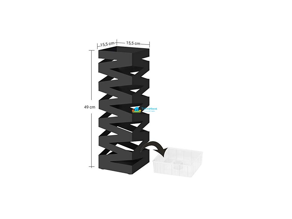 Moderní a stylový vzhled tohoto stojanu na deštníky zaručeně upoutá pozornost. Tento stojan disponuje odolnou kovovou konstrukcí, která zabraňuje jeho převrácení. Jeho povrchová úprava je odolná proti korozi. Používá se jako odkládací stojan na dlouhý, ale i krátký deštník, hole, trekingové hole nebo lžíci na obuv. Dodává se s odnímatelnou plastovou odkapávací vaničkou, která zabraňuje vytékání vody a chrání vaši podlahu před vlhkostí. Stojan o výšce 49 cm nabízí dostatek místa pro dlouhé deštníky. Ale nejen to, díky 4 háčkům, které jsou součástí balení (2 dlouhé a 2 krátké), můžete zavěsit i malé skládací deštníky, aby se nehromadily uvnitř stojanu.