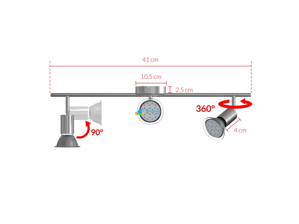 Stropní LED světlo svítí 300 lumenů na bod. Požadovanou oblast lze optimálně osvětlit pohyblivými reflektory. Díky jednoduché instalaci lze použít v interiéru různými způsoby. Žárovky jsou součástí dodávky.