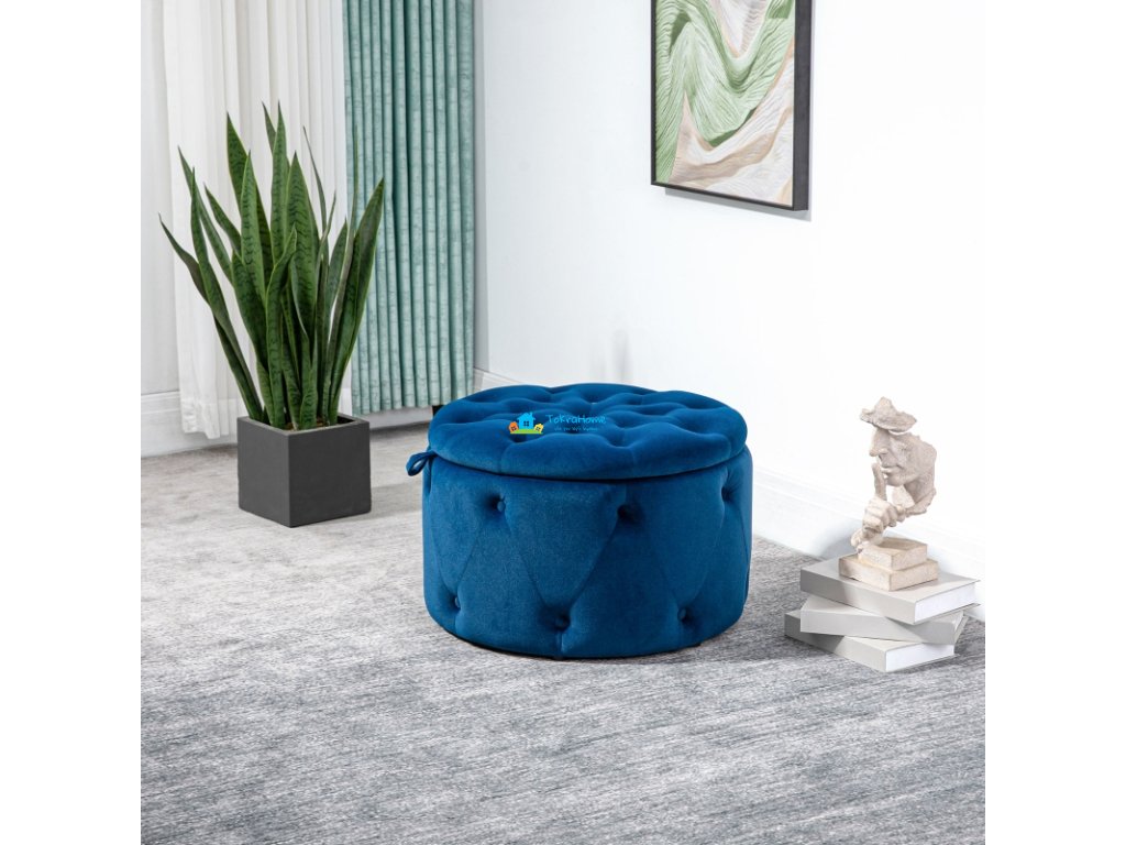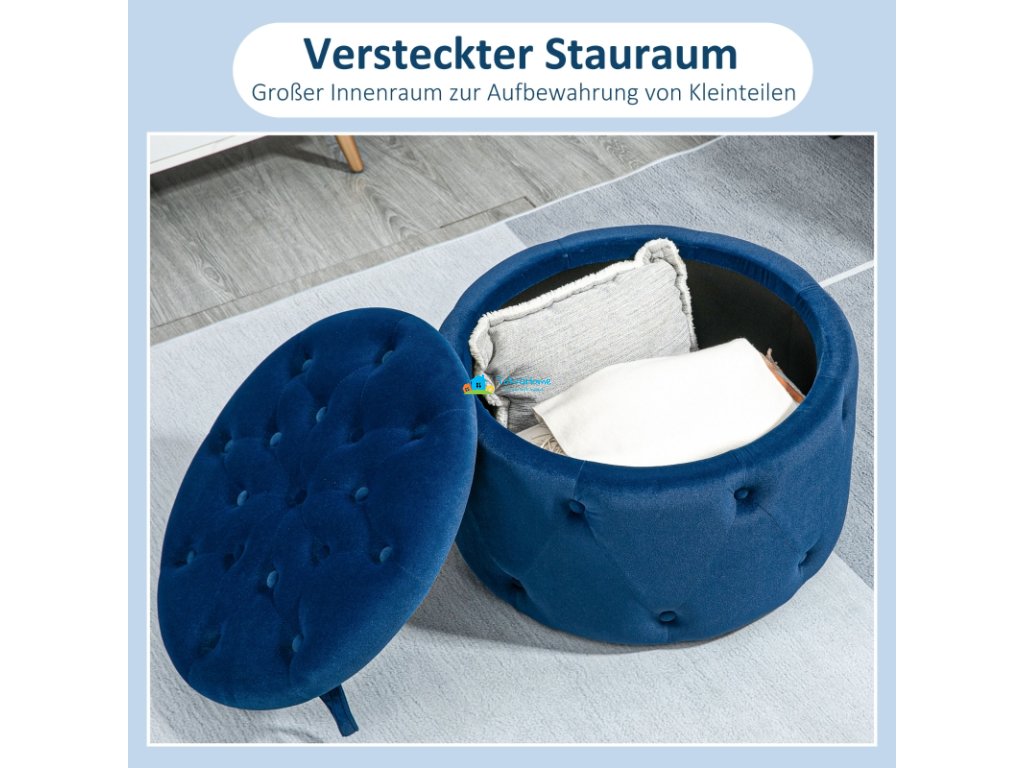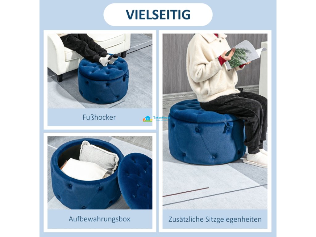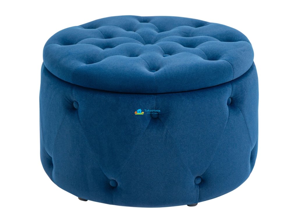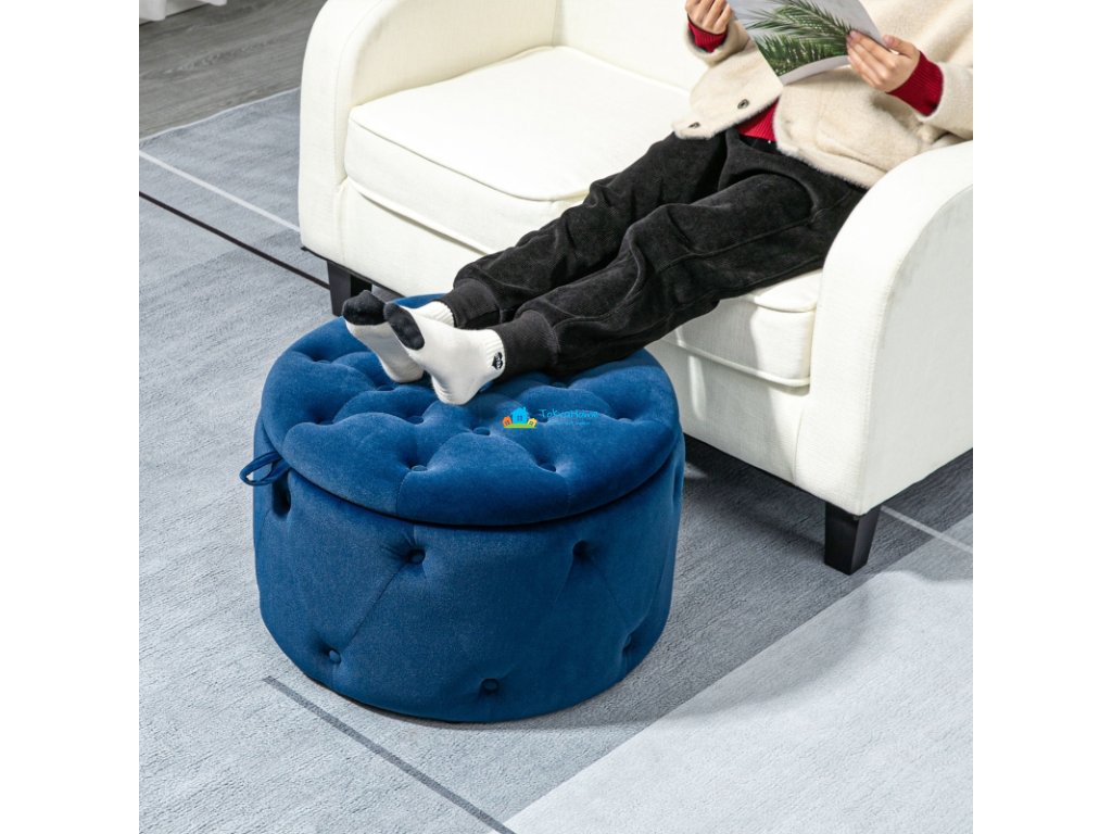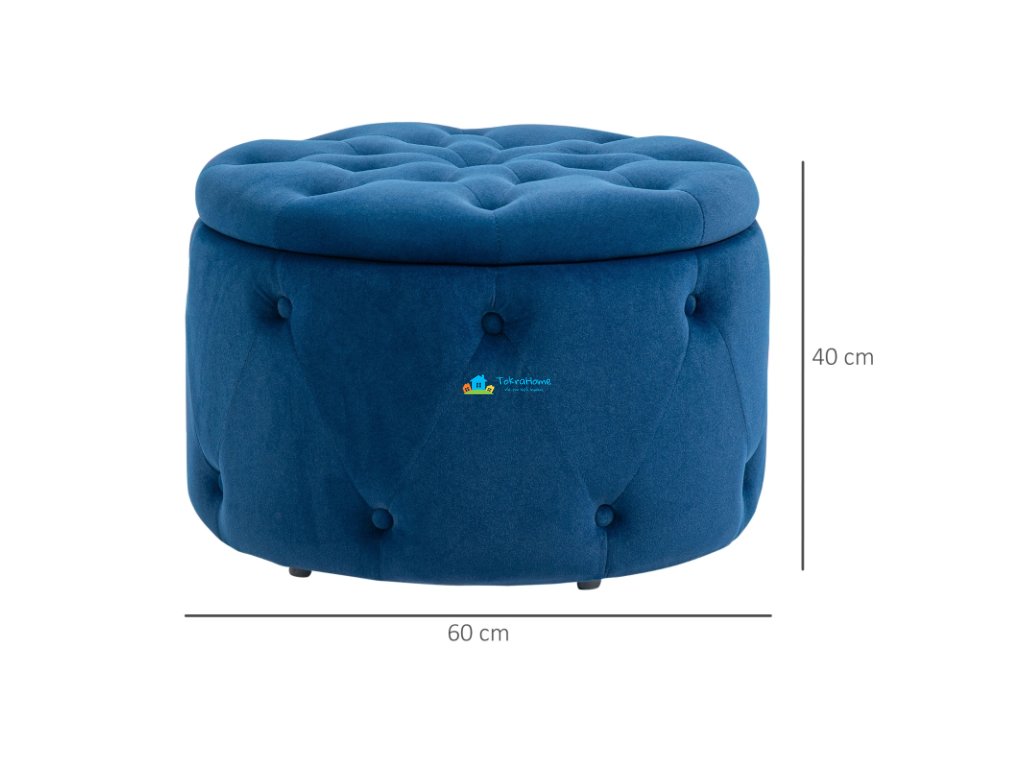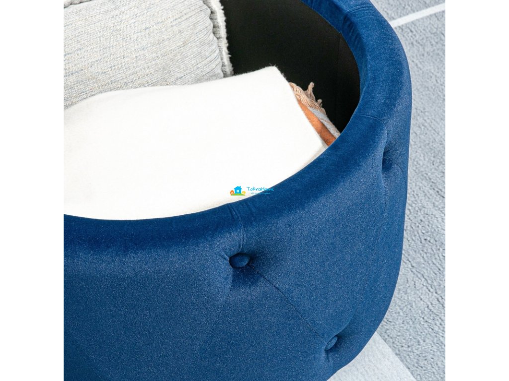 Kulatý taburet Homcom s úložným prostorem a nosností až 120 kg, prošívaný design s knoflíky.