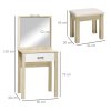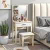 Kosmetický toaletní stolek se zrcadlem, zásuvkou a polstrovaným taburetem, ochrana proti převrácení, dekor dubu, zásuvka v bílé barvě.