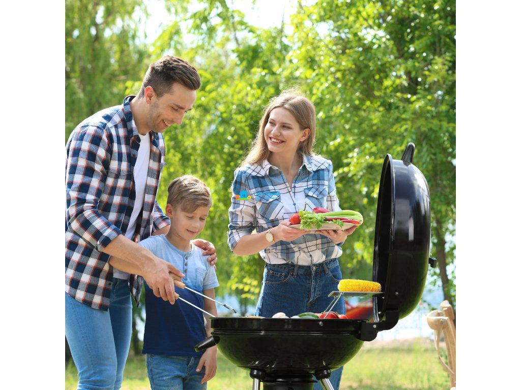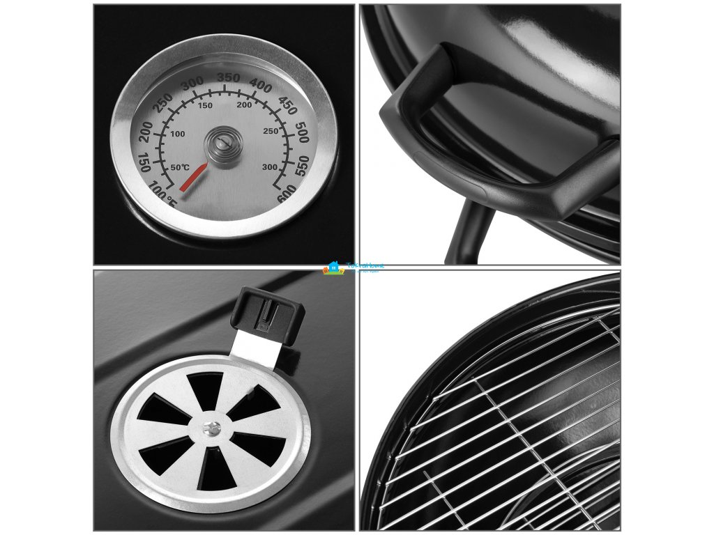 Zahradní gril na dřevěné uhlí s teploměrem, průměr 54 cm