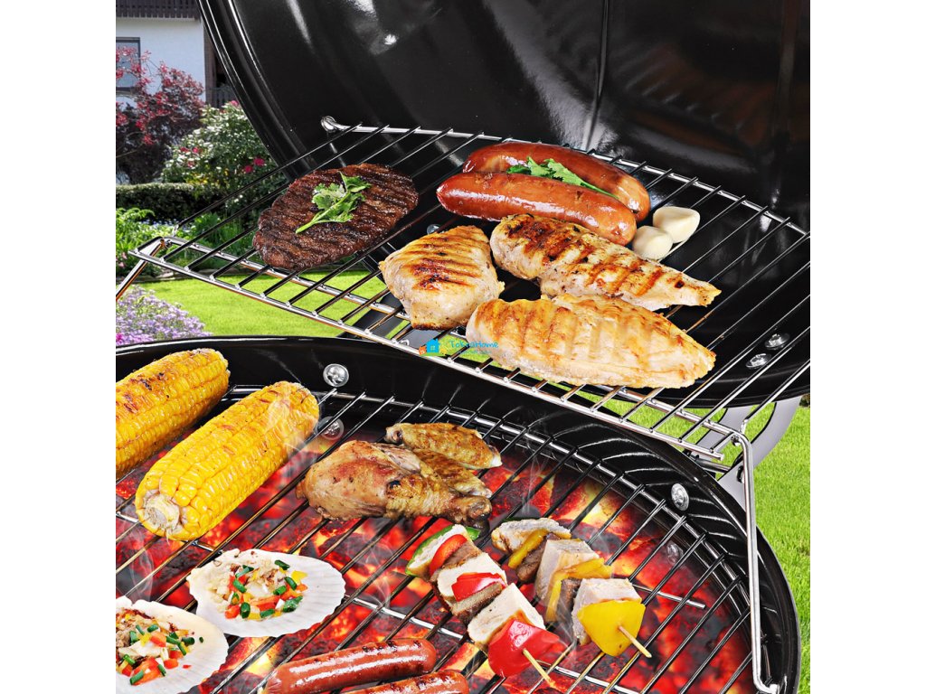 Úložný koš a police nabízejí dostatek úložného prostoru pro dřevěné uhlí, grilované potraviny nebo grilovací nástroje. Víko grilu je odnímatelné. Se zavřeným víkem můžete také grilovat nepřímo.