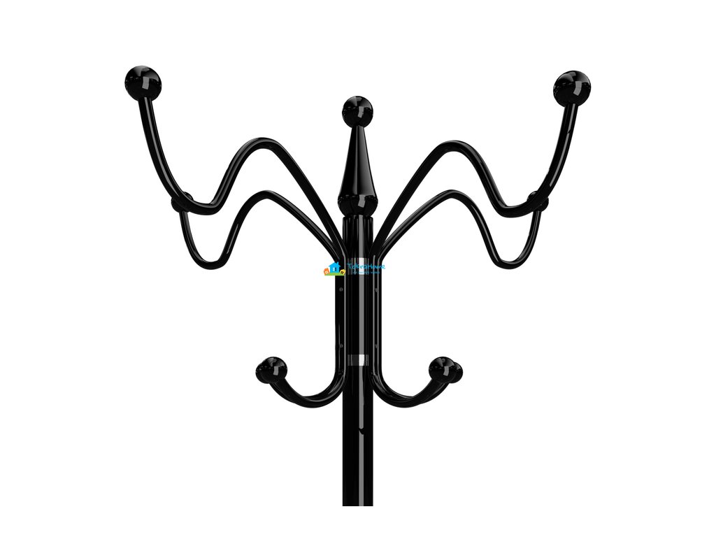 Stylový věšák značky CASARIA se hodí do předsíně, kanceláře i menších prostor. Nabízí 14 háčků na třech úrovních, přičemž horní otočný věnec s 10 háčky umožňuje pohodlné zavěšení bund či kabátů, zatímco 4 háčky ve střední části jsou dobře dosažitelné pro děti nebo vhodné na tašky a batohy. Součástí je také praktický stojan na deštníky, který doplňuje funkčnost.