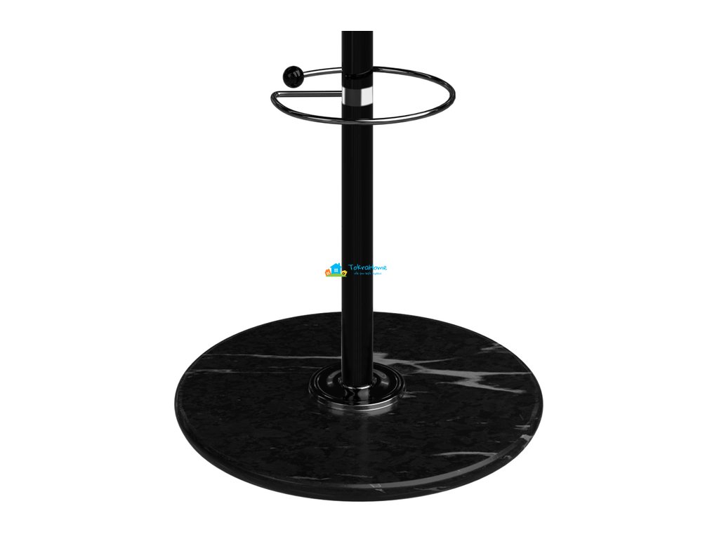 Robustní mramorová základna s průměrem 37 cm zajišťuje stabilitu i při plném zatížení až 35 kg. Kovové části jsou pochromované, což dodává moderní vzhled a odolnost. Stojan má výšku 175 cm, snadno se sestavuje a je k dispozici v elegantní černé barvě.