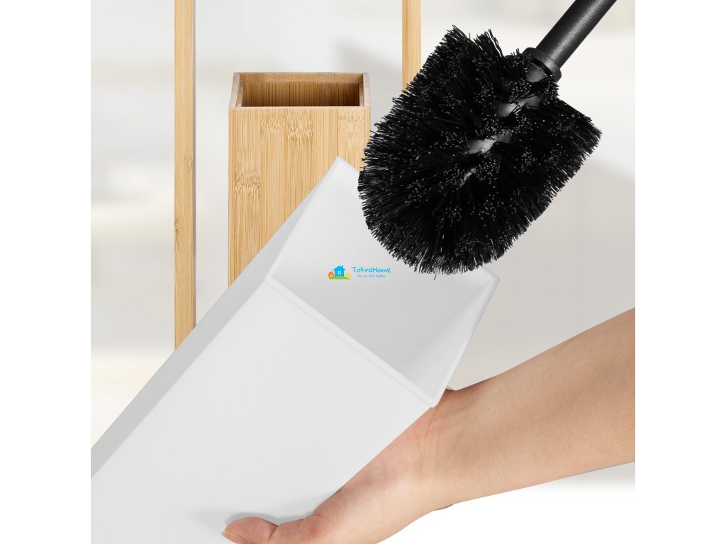Základní deska zajišťuje stabilní stojan a kompaktní velikost volně stojící podlahové sady se vejde i do těch nejmenších koupelen. Pro pevné držení na podlaze jsou součástí dodávky čtyři protiskluzové samolepky, které můžete libovolně připevnit. Kryt přes toaletní papír chrání před stříkající vodou a zajišťuje čistý, optický povrch. Navíc tato sada svým teplým dřevěným tónem přináší lázeňský šmrnc do vaší koupelny. Druhá ochrana proti stříkající vodě na kartáči je zároveň krytem nádoby na kartáč a chrání před prachem. Rukojeť toaletní štětky je vyrobena z nerezové oceli, která je zvláště odolná vůči korozi. V případě obzvláště silného opotřebení lze vyměnit celou toaletní štětku. Materiál sady je obzvláště odolný a v případě potřeby jej lze otřít vlhkým hadříkem.