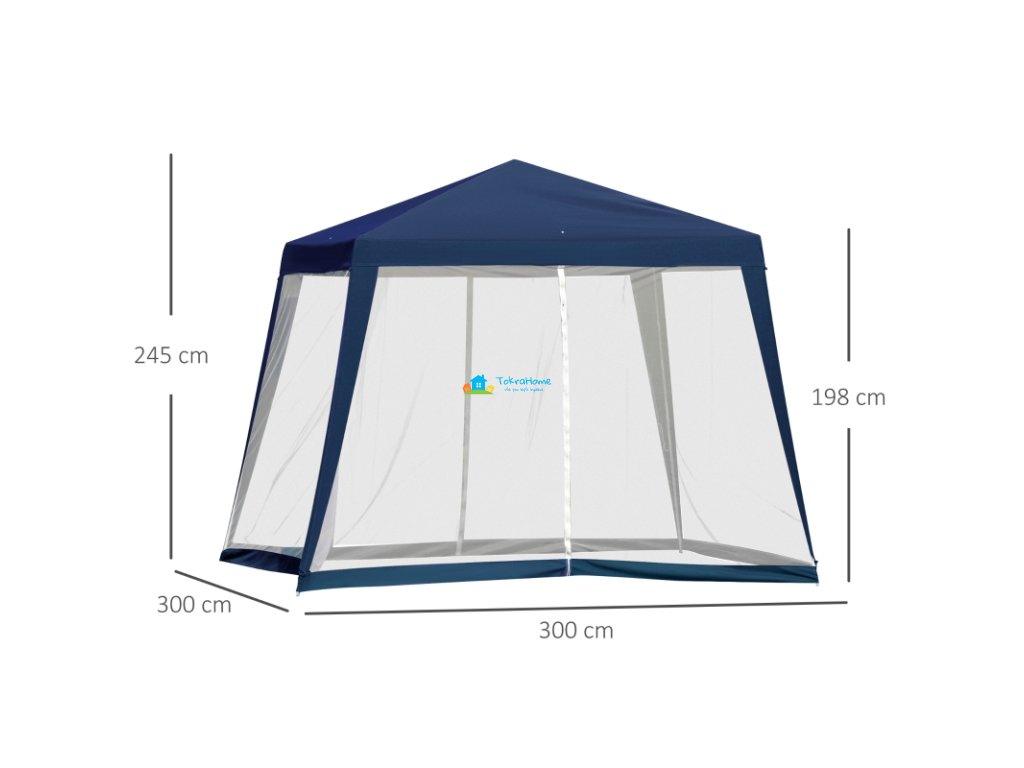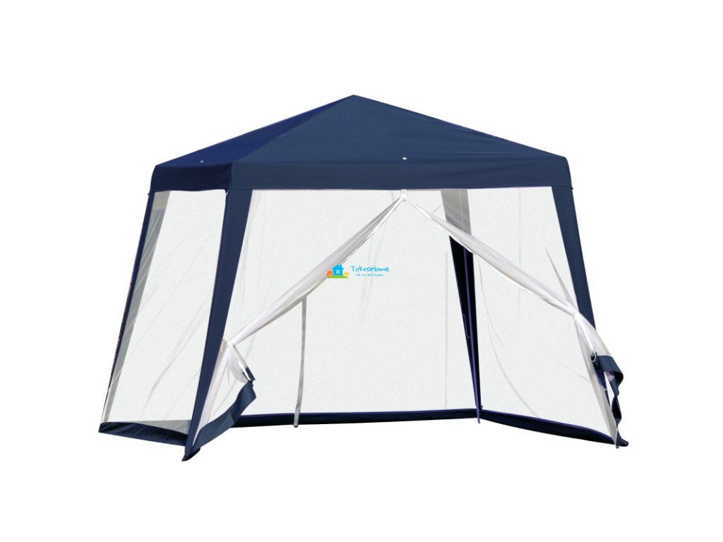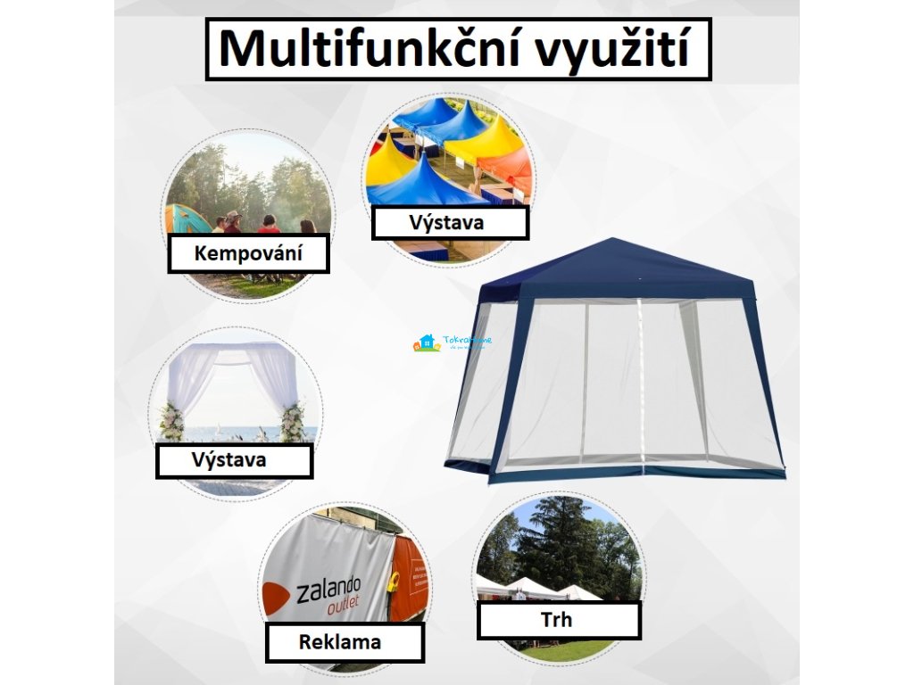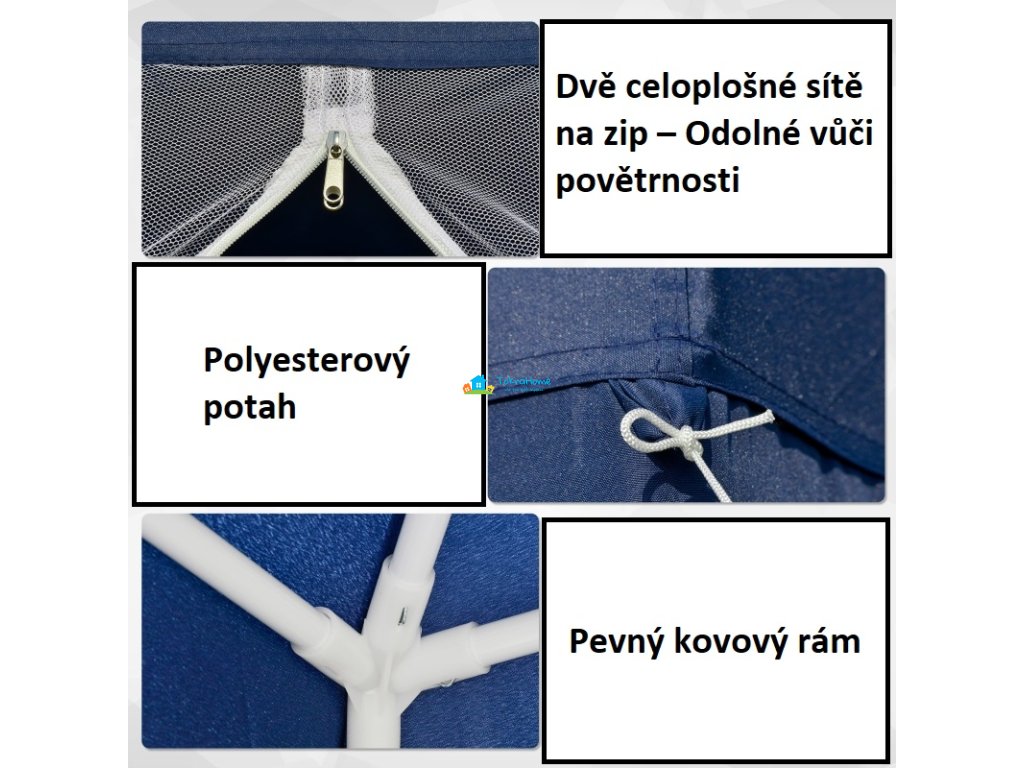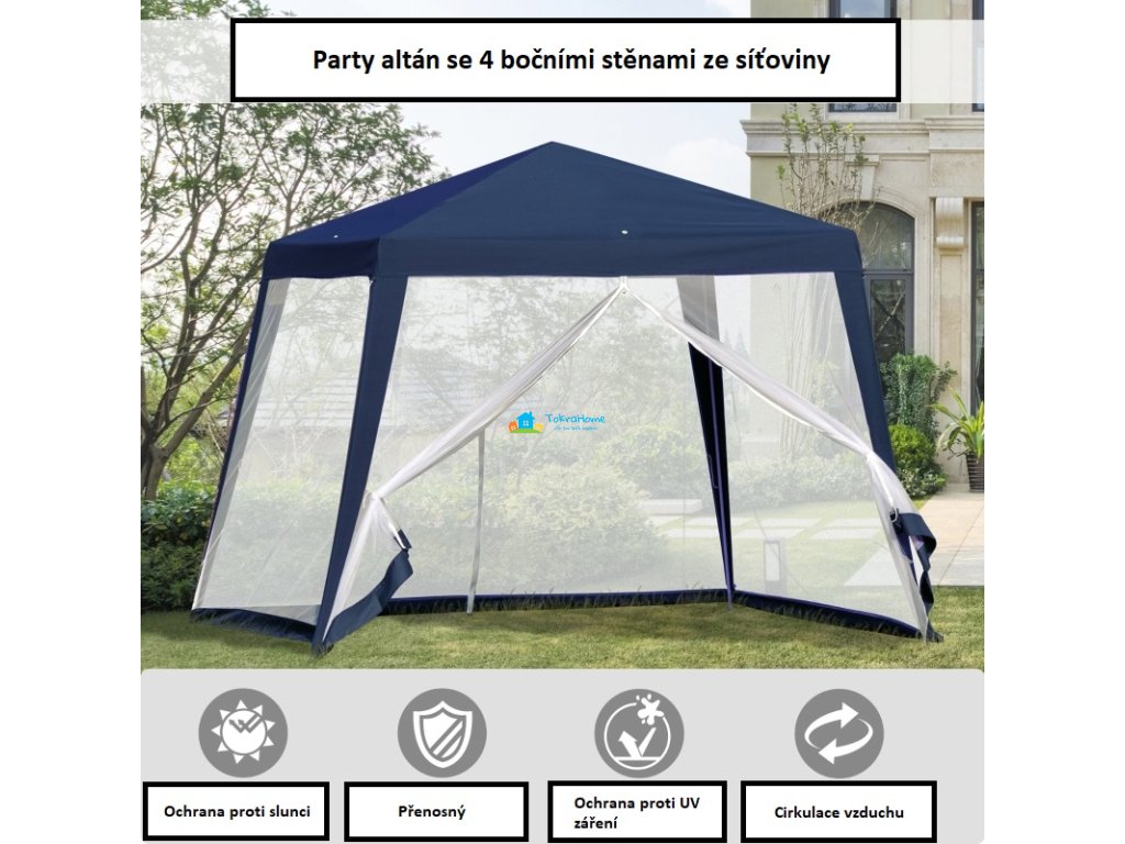 Zahradní altán, voduodpudivá střecha, boční moskytiéry, snadná a rychlá montáž, práškově lakovaný kovový rám, modrý
