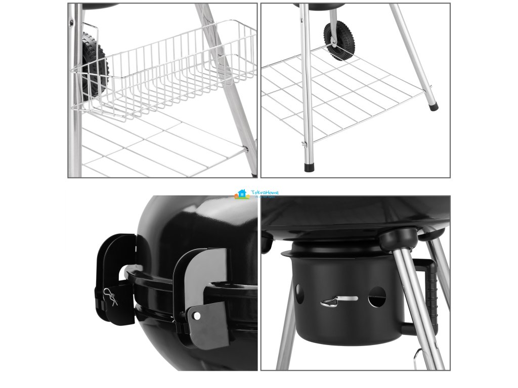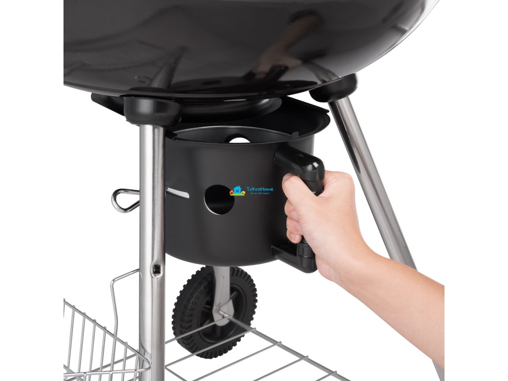 Úložný koš a police nabízejí dostatek úložného prostoru pro dřevěné uhlí, grilované potraviny nebo grilovací nástroje. Víko grilu je odnímatelné. Se zavřeným víkem můžete také grilovat nepřímo.
