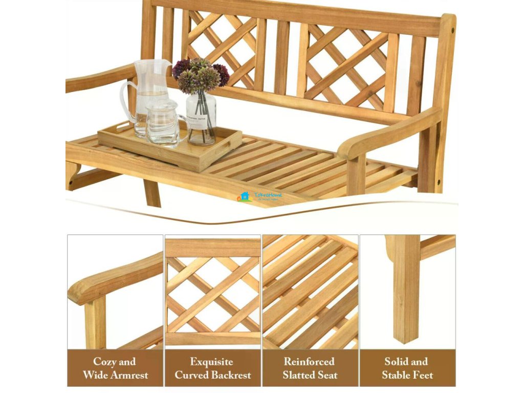 Jedinečná a pohodlná dřevěná lavička se skvěle hodí na terasu, dvorek i zahradu. Rám lavičky je vyroben z prvotřídního akáciového dřeva a je pevný a odolný pro dlouhodobé používání. Materiál je odolný vůči povětrnostním vlivům a nepraská. Díky použití prvotřídních pozinkovaných šroubů je antikorozní pro venkovní použití. Silné nohy zlepšují nosnost lavičky, která dosahuje až 300 kg. Dřevěná lavice je dostatečně prostorná, aby se na ni mohli posadit 2 lidé. Lavice je velmi pohodlná, je navržena s mírně skloněným opěradlem a širokými područkami, takže se na ní pohodlně sedí a odpočívá. K tomu přispívá i to, že sedák lavice používá dřevěný laťkový rošt, který je prodyšný a pohodlný. Díky klasickému stylu tato dřevěné lavice dodá vaší zahradě přírodní akcent. Na rozdíl od jiných lavic je tato vybavena zámky pro upevnění různých částí, které nejen posilují lavici, ale také usnadňují její skládání. Tuto venkovní dřevěnou lavici lze snadno složit, když se nepoužívá, což zabírá jen omezený prostor, a snadno se také skladuje.