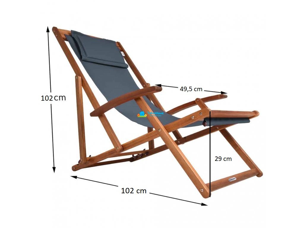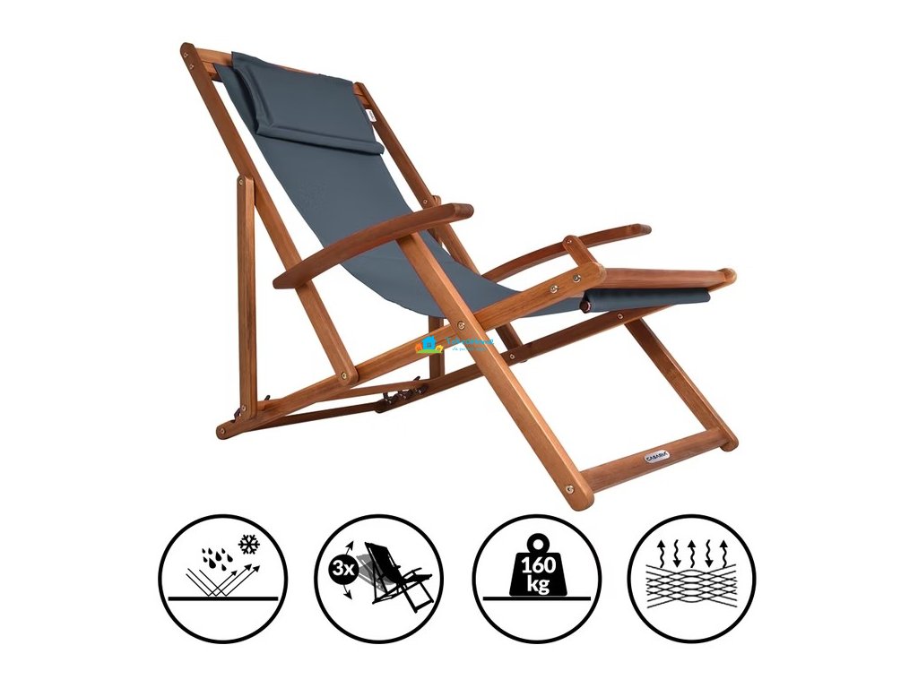 Ať už v zahradě, na terase, pro pikniky, rybaření, výlet na koupání nebo u zatopeného lomu, toto plážové/zahradní lehátko z tvrdého dřeva je stabilní a funkční. Plážové/zahradní lehátko je nastavitelné ve 3 směrech a lze jej rychle složit v několika jednoduchých krocích. Je proto kompaktní a snadno se přepravuje. Loketní opěrky a polstrovaný polštář, zajišťují vysokou úroveň komfortu sezení. Lehátko nabízí dokonalé přizpůsobení těla a tkanina poskytuje prodyšnost. Zabraňuje pocení, i když sedíte dlouhou dobu. Lehátko má nižší posed, což je u tohoto typu běžné. Pro osoby se sníženou pohyblivostí, ale může být vstávání z lehátka obtížnější.