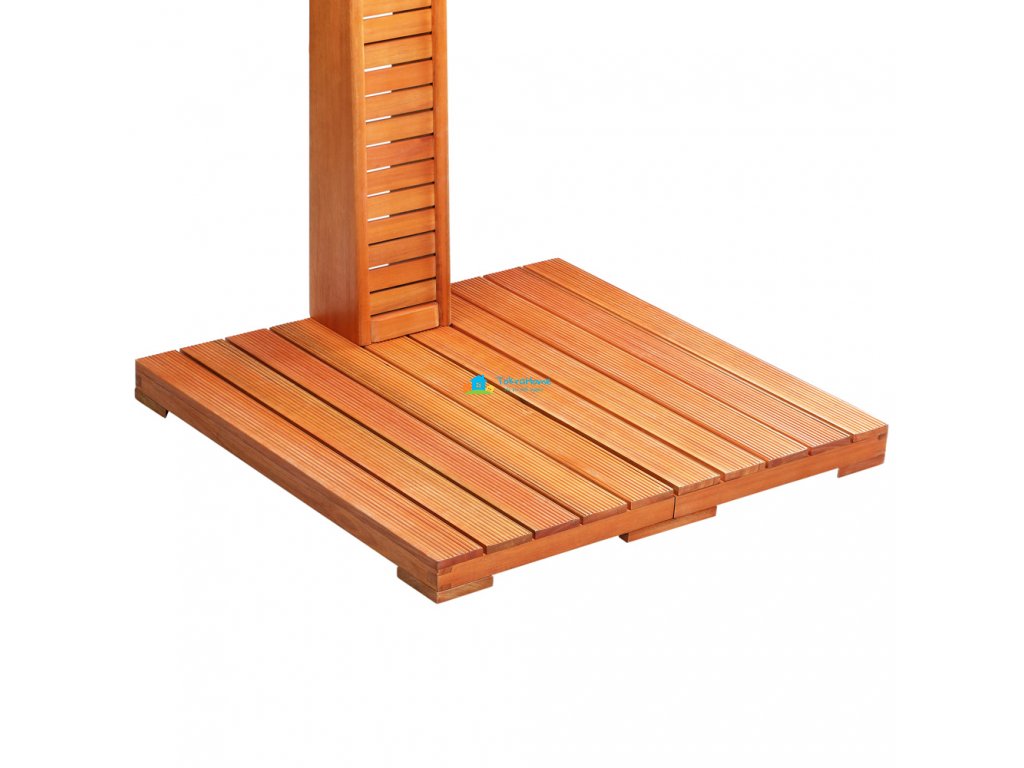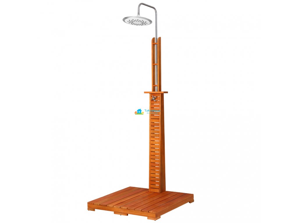 Sprchová hlavice o průměru 200 mm poskytuje příjemný, lehký proud vody a je samoodvápňovací. Zahradní sprcha má navíc podlahový panel. Jednoduše připojte zahradní hadici a zážitek ze sprchování může začít.